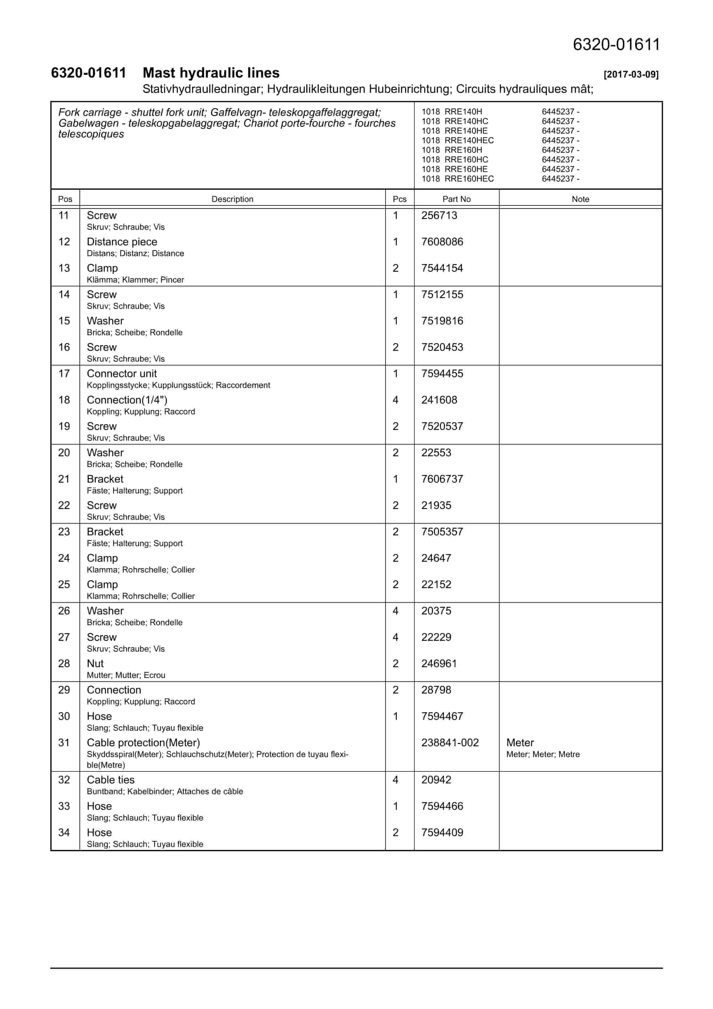 BT RRE140H, RRE140HC, RRE140HE, RRE140HEC, RRE160H, RRE160HC, RRE160HE, RRE160HEC Quality Parts 7601419