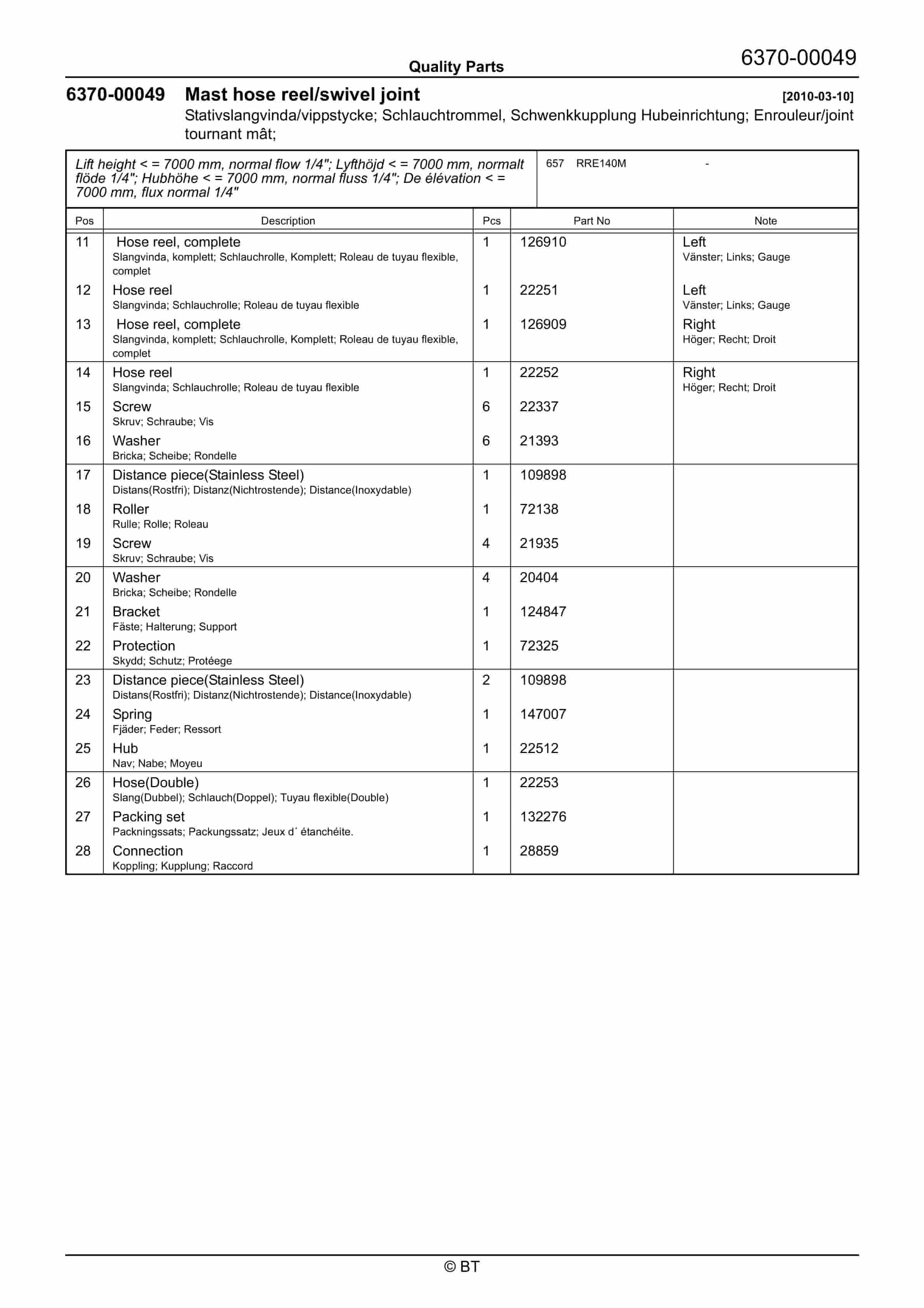 BT RRE140M Quality Parts 7517996