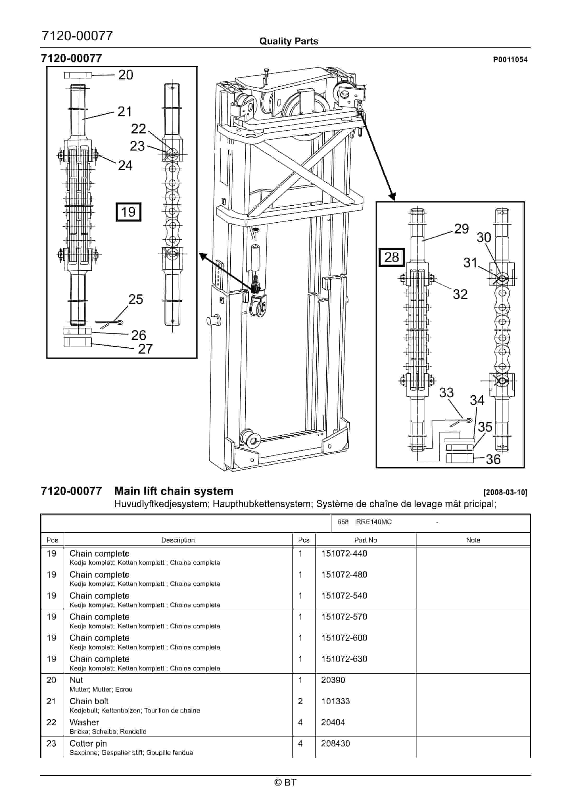 BT BTL20EW, BTL20EWO, BTL30EW, BTL30EWO, L20BR, L20BRO, L30BR, L30BRO Quality Parts 177967