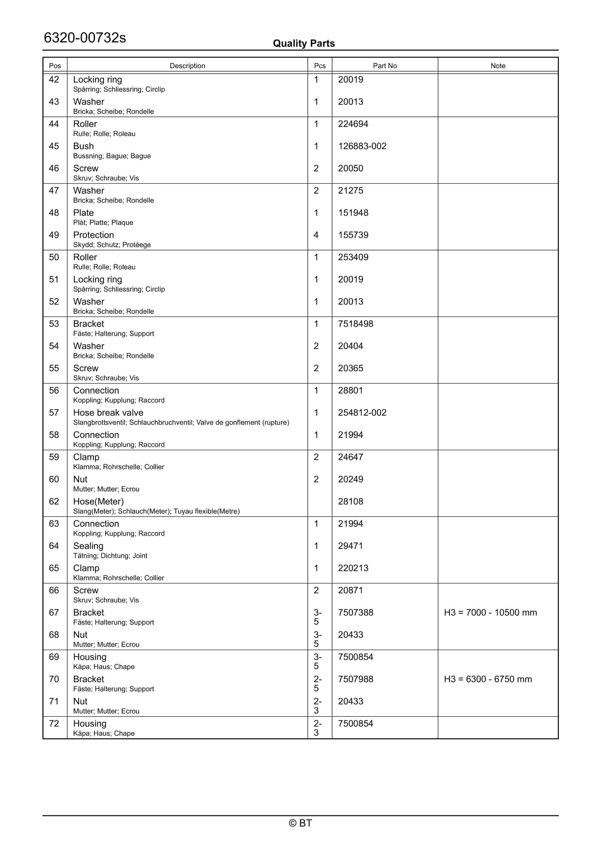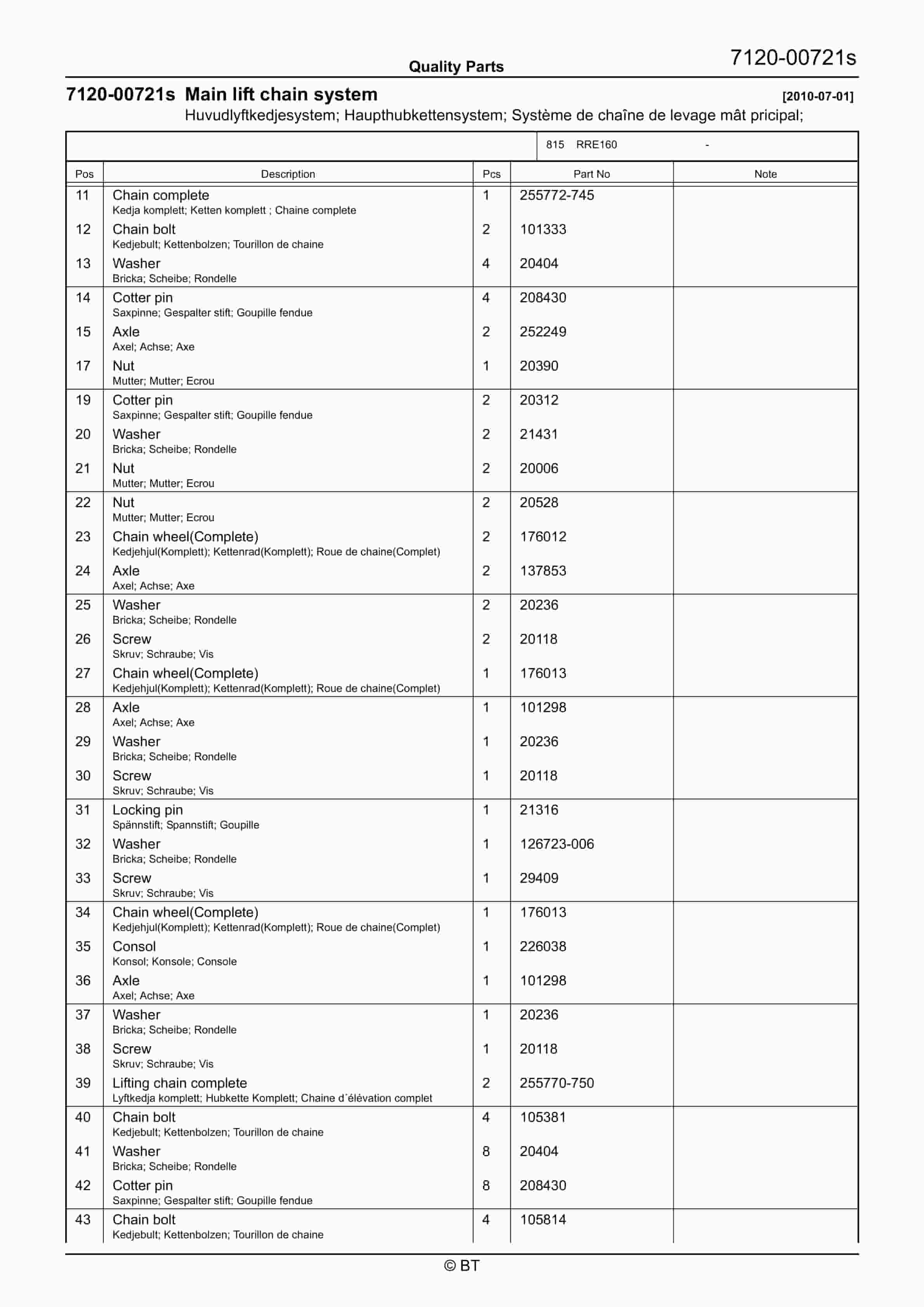 BT 600-TT, 602-TT, 604-TT, 608-TT, 609-TT, 610-TT, 612-TT, 620-TT Quality Parts 208538