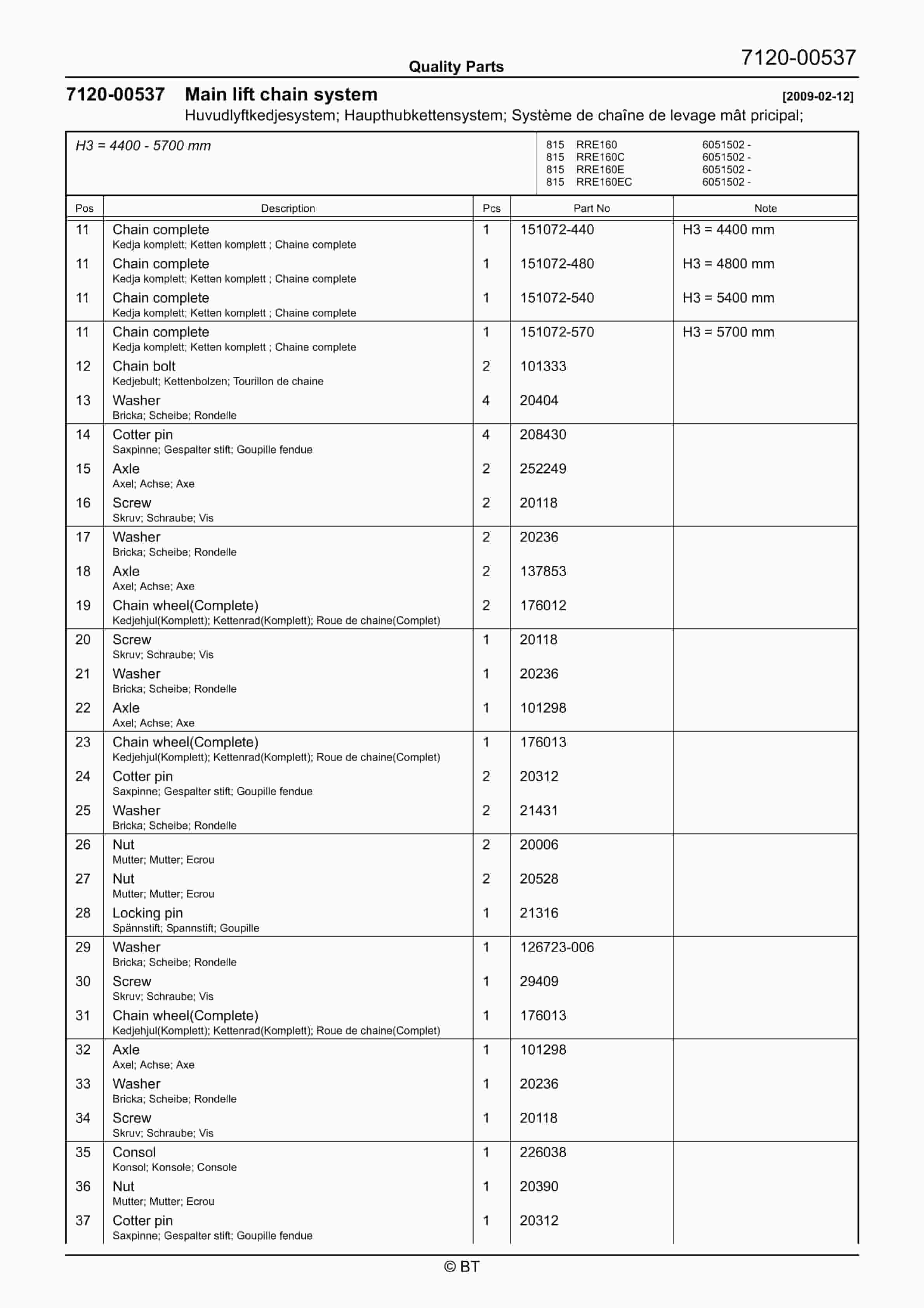 BT RRE160, RRE160C, RRE160E, RRE160EC Quality Parts 7509889