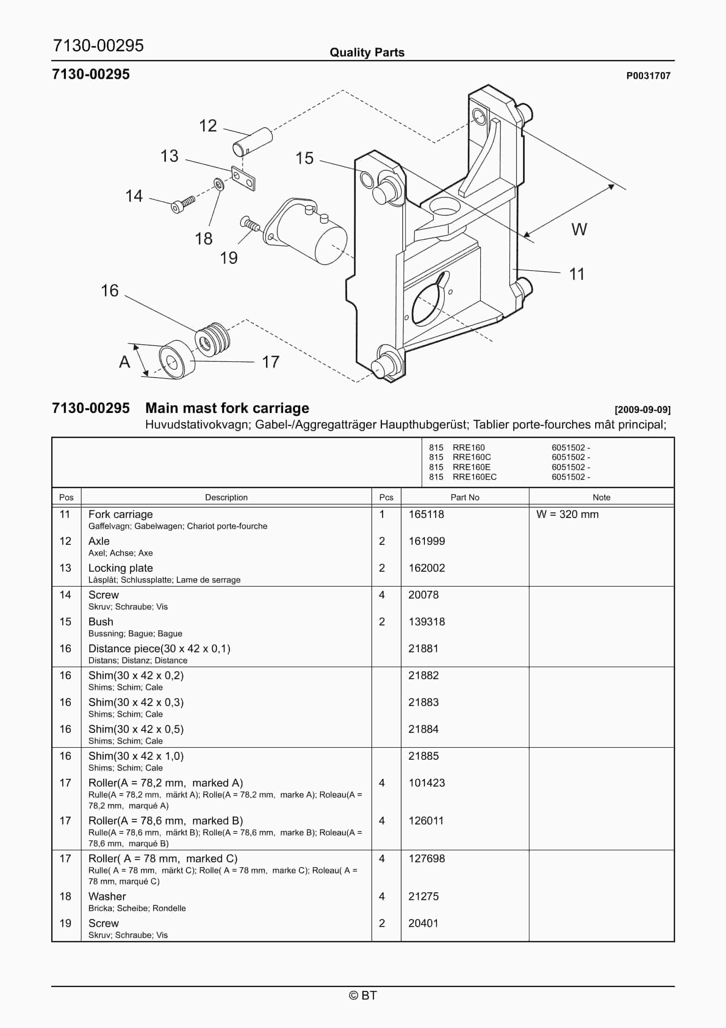 BT RRE160, RRE160C, RRE160E, RRE160EC Quality Parts 7517332