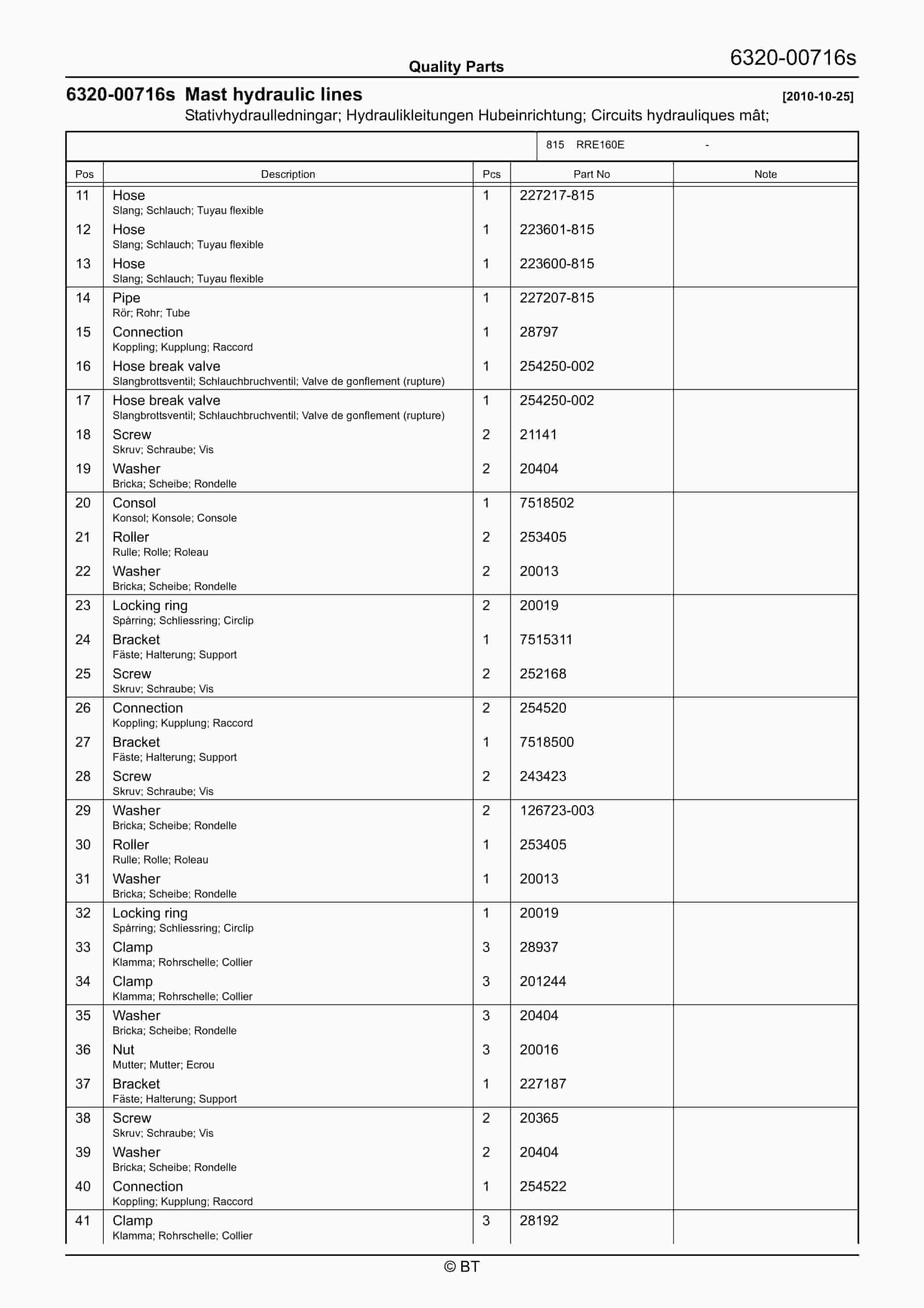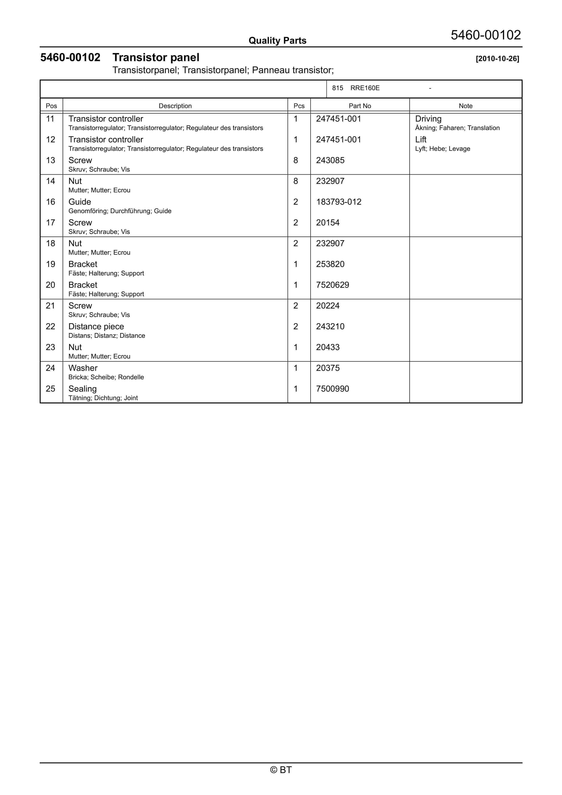 BT 600-TT, 602-TT, 608-TT, 609-TT, 610-TT, 612-TT, 620-TT (AC) Quality Parts 212162