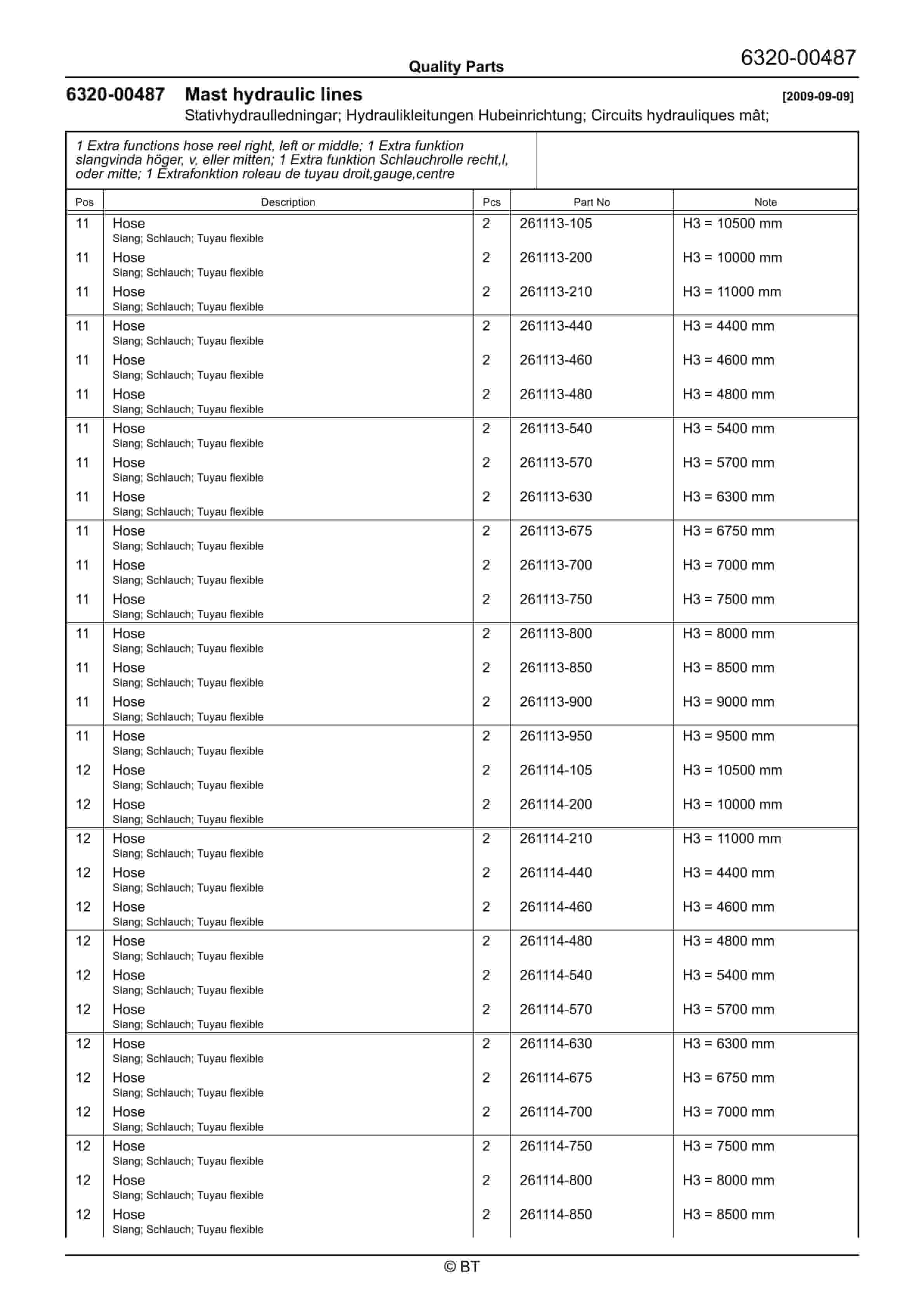 BT BTL2000, BTL2000I, BTL2000K, BTL2000O, BTL2000Q, BTL2000X, BTL2000U, BTL2000QX, Serial 11 Quality Parts 170417