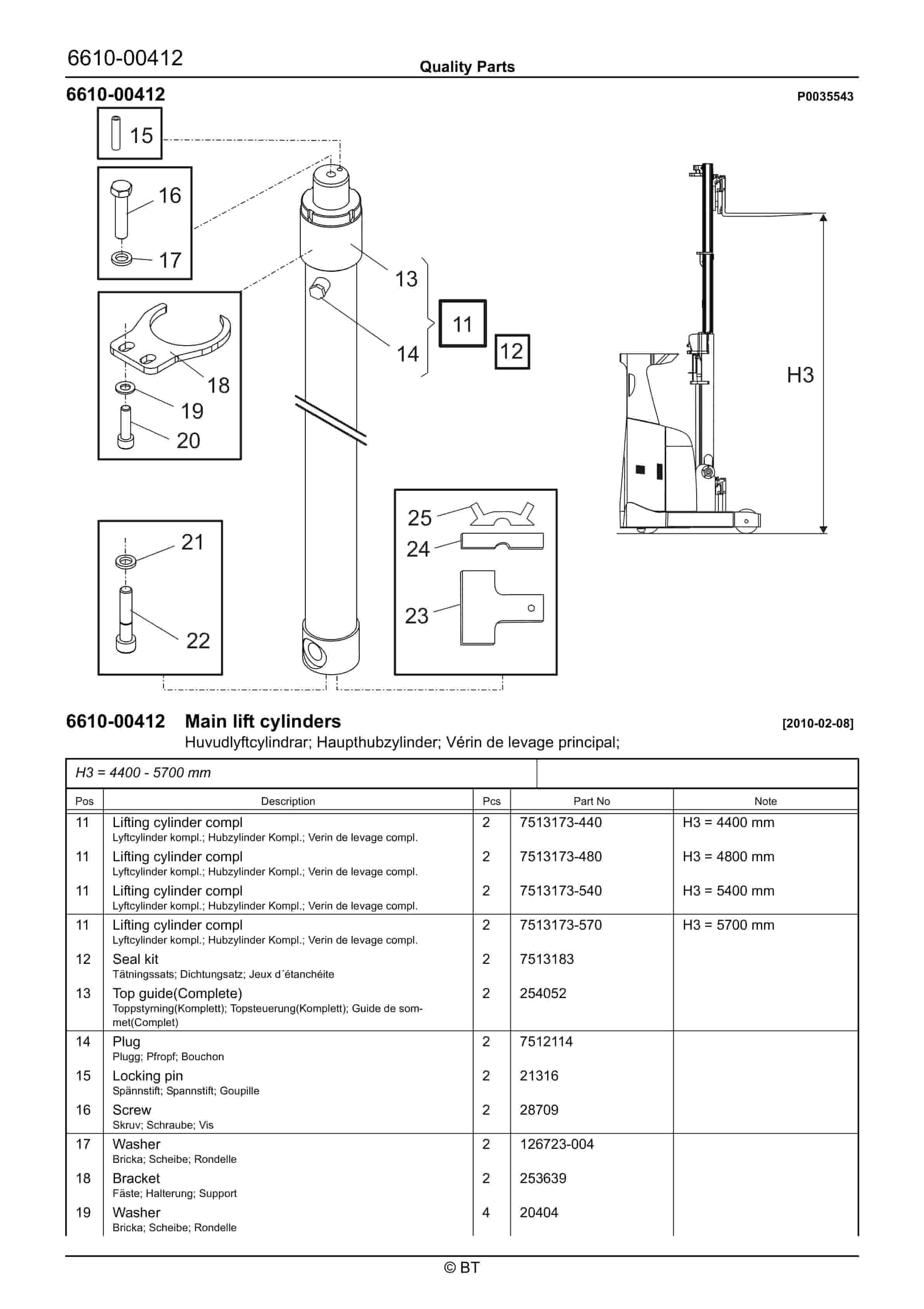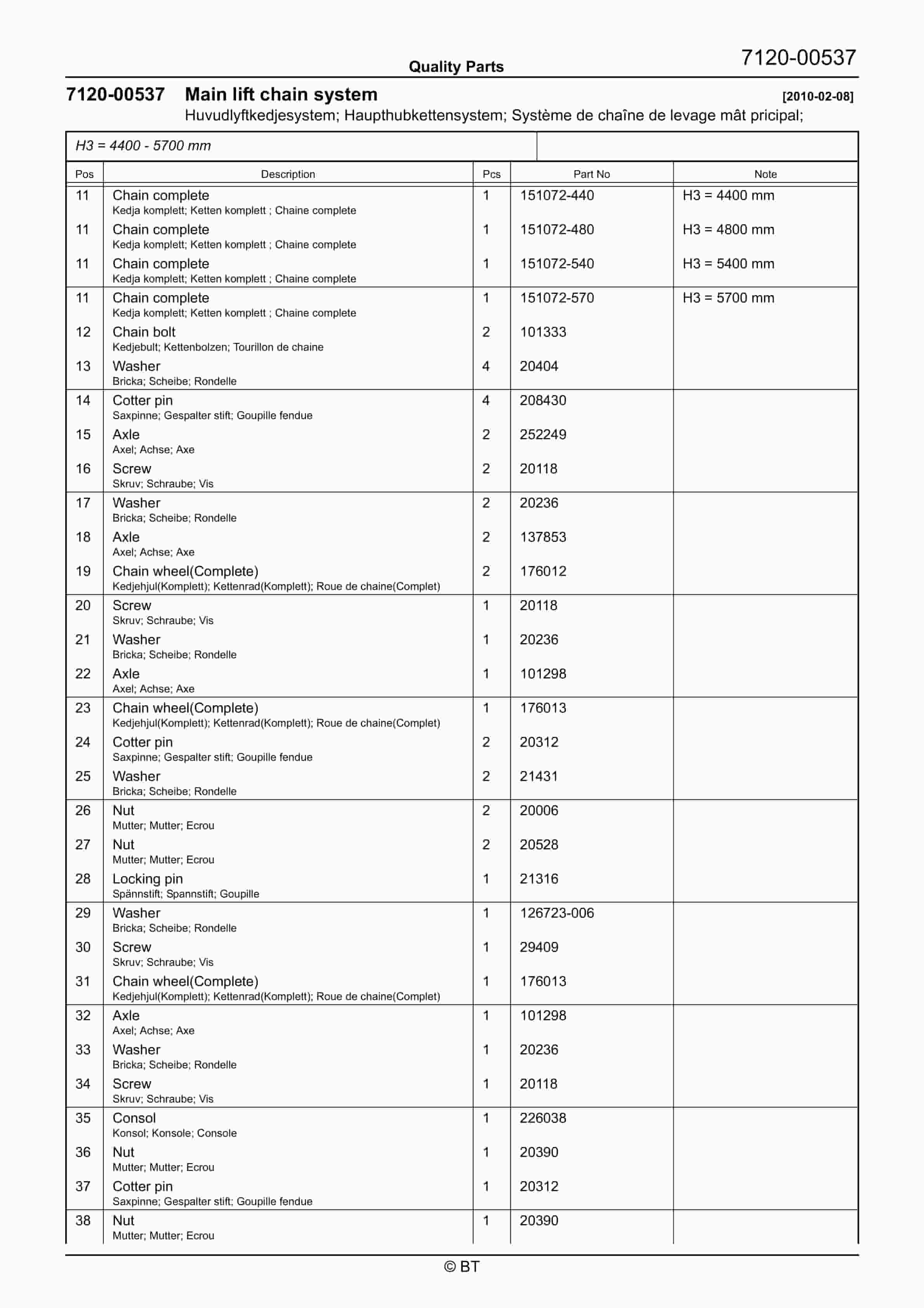 BT BTL20EW, BTL20EWO, BTL30EW, BTL30EWO, L20BR, L20BRO, L30BR, L30BRO Quality Parts 177967