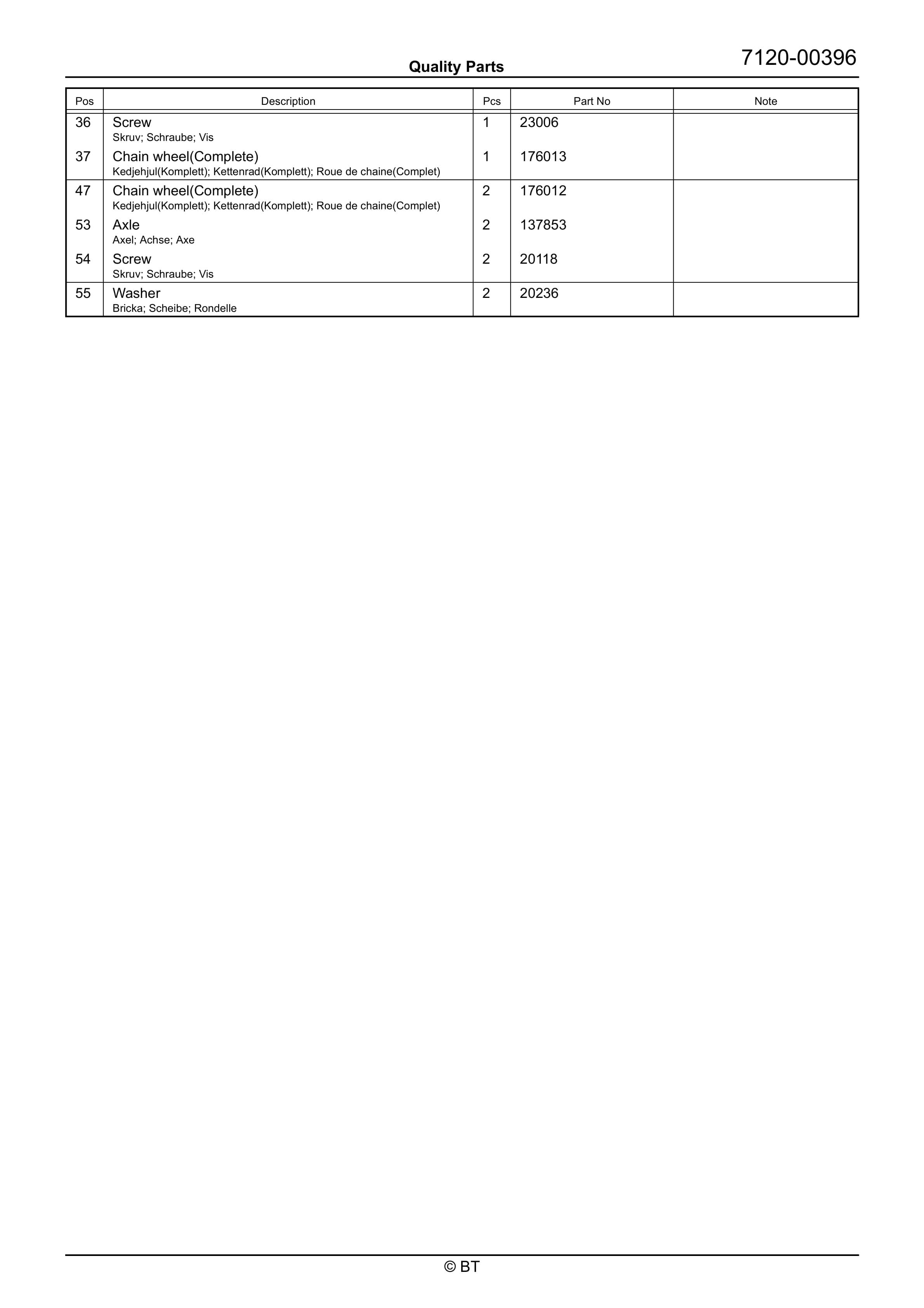 BT 600-TT, 602-TT, 608-TT, 609-TT, 610-TT, 612-TT, 620-TT (AC) Quality Parts 212162