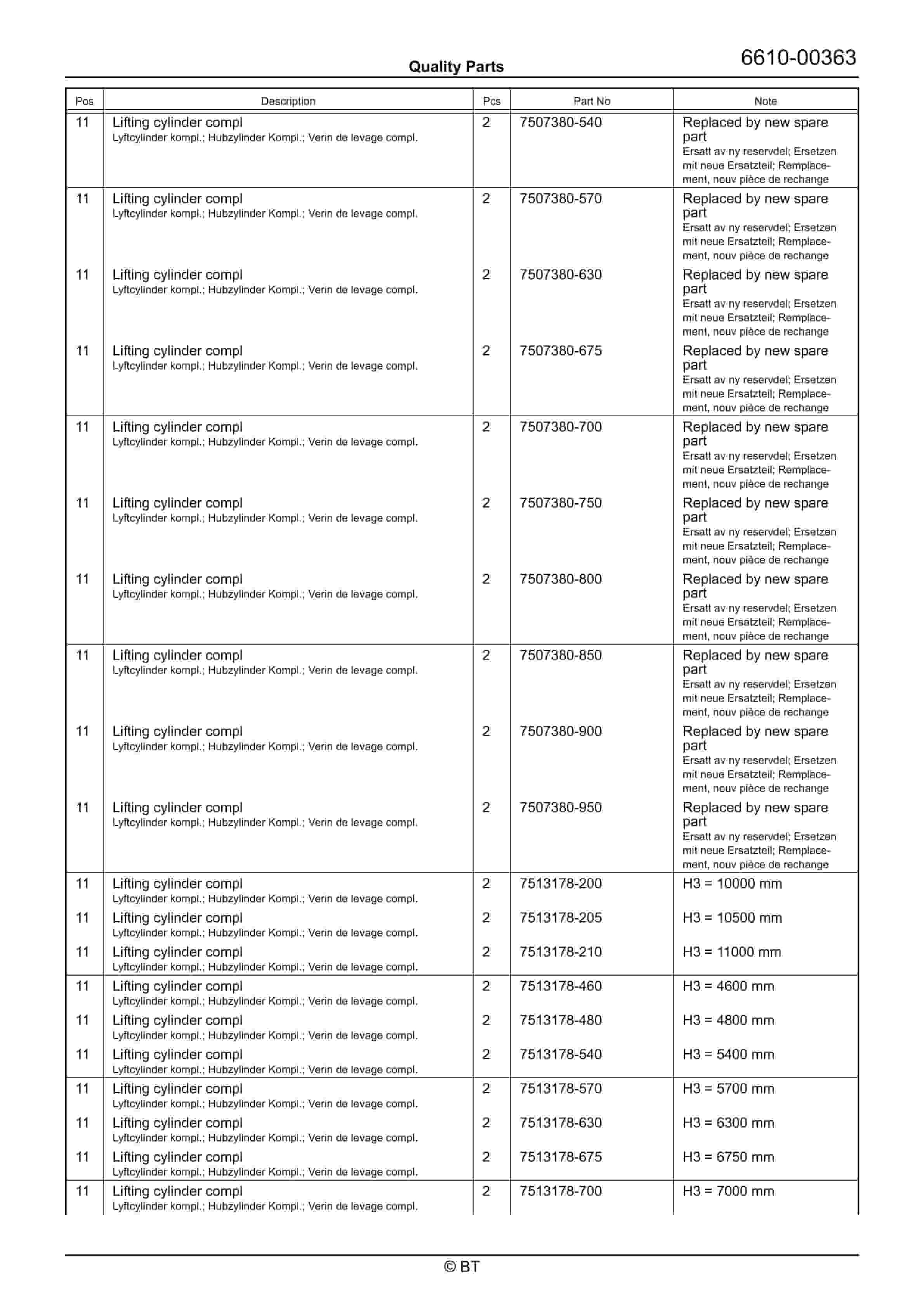 BT 600-TT, 602-TT, 604-TT, 608-TT, 609-TT, 610-TT, 612-TT, 620-TT Quality Parts 208538