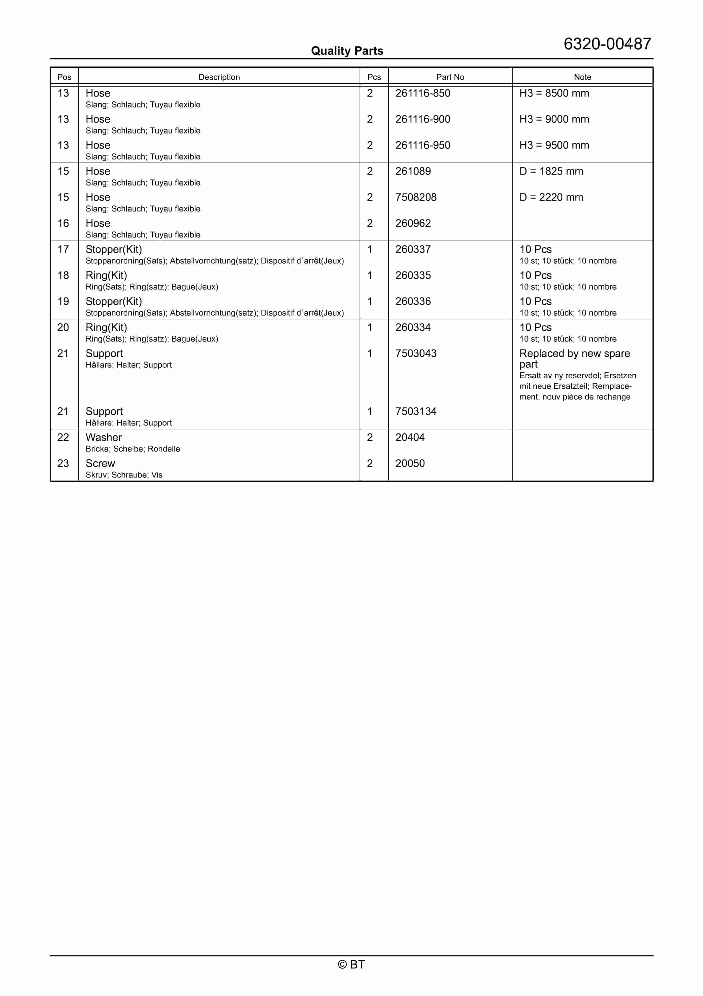 BT 602-TT, 608-TT, 609-TT, 610-TT, 612-TT, 620-TT (AC) Quality Parts 253711