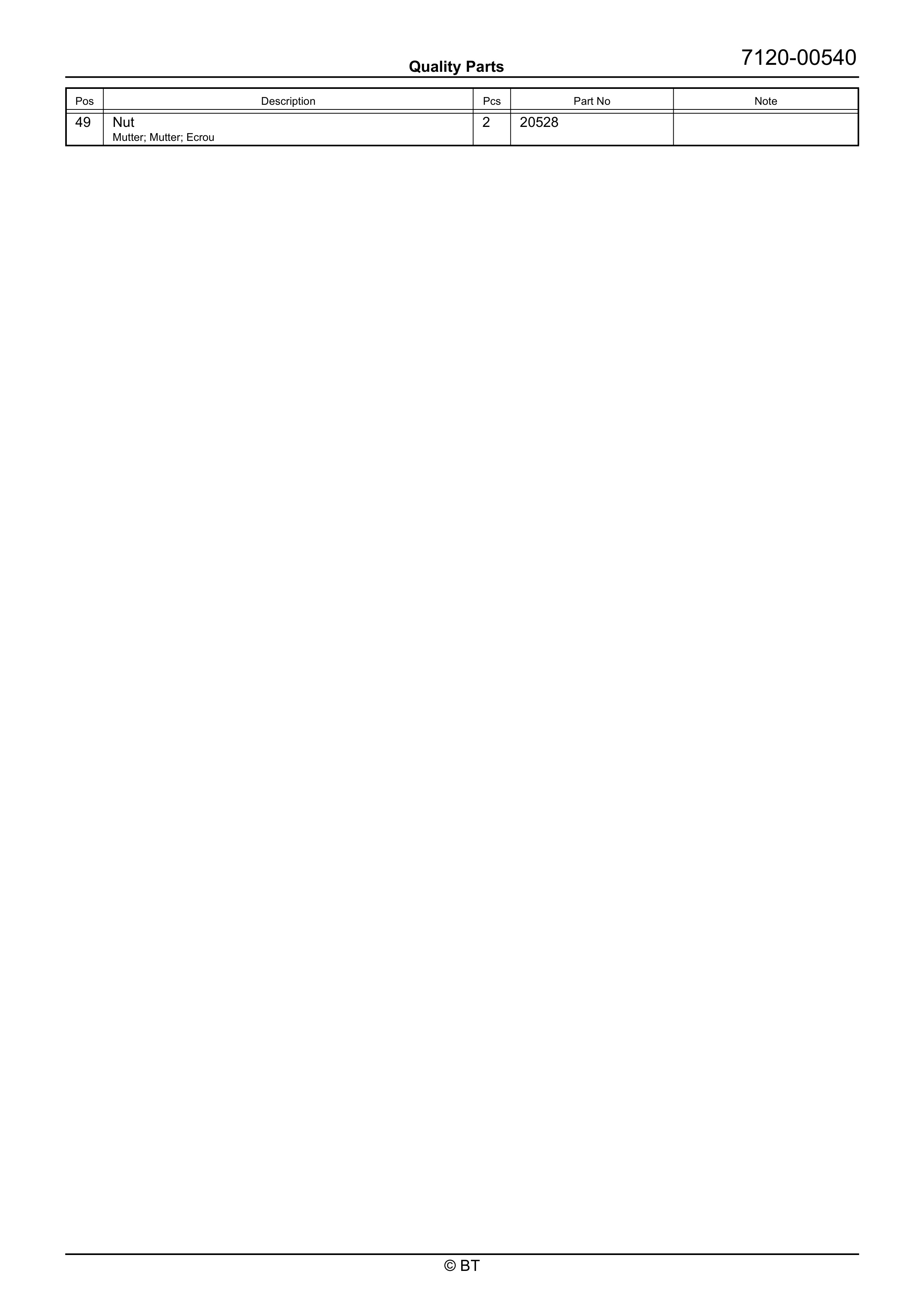 BT BTL20EW, BTL20EWO, BTL30EW, BTL30EWO, L20BR, L20BRO, L30BR, L30BRO Quality Parts 177967