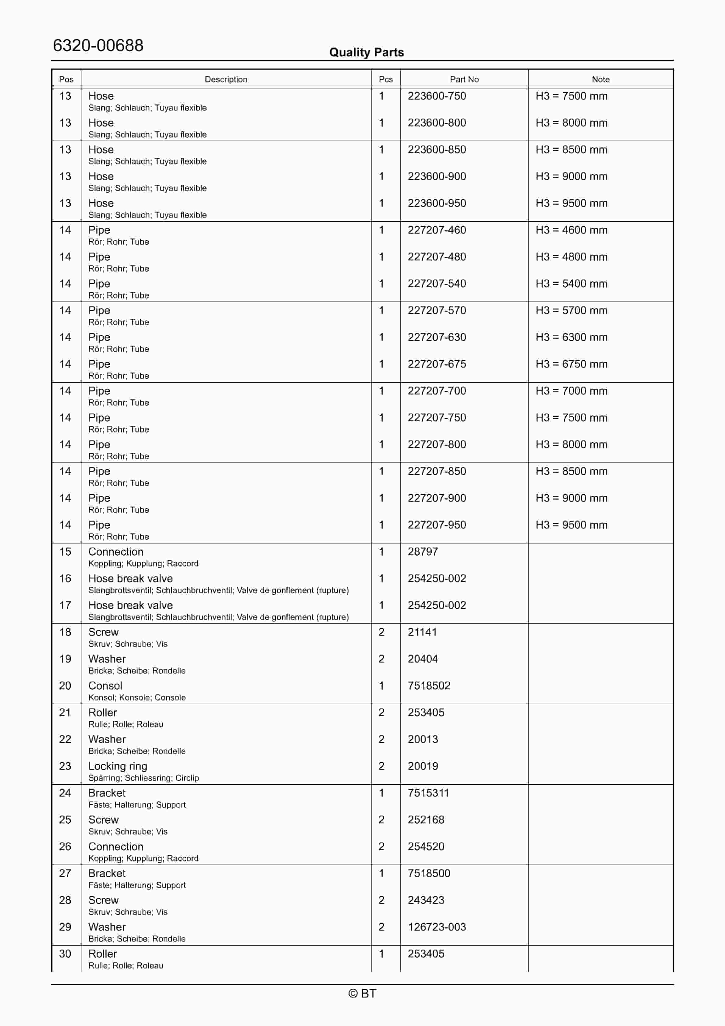 BT BTL20EW, BTL20EWO, BTL30EW, BTL30EWO, L20BR, L20BRO, L30BR, L30BRO Quality Parts 177967