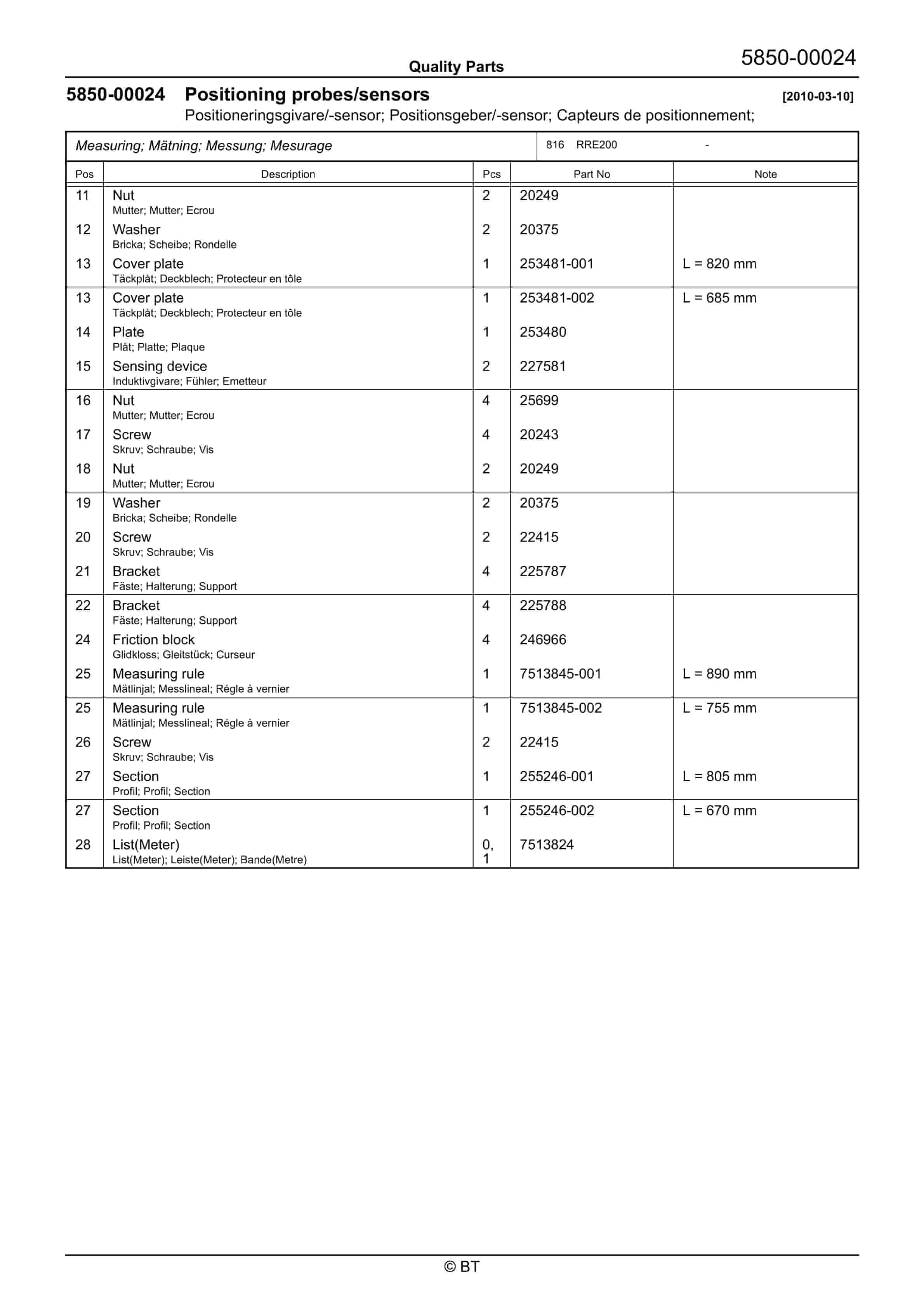 BT 602-TT, 608-TT, 609-TT, 610-TT, 612-TT, 620-TT Quality Parts 07904570EB