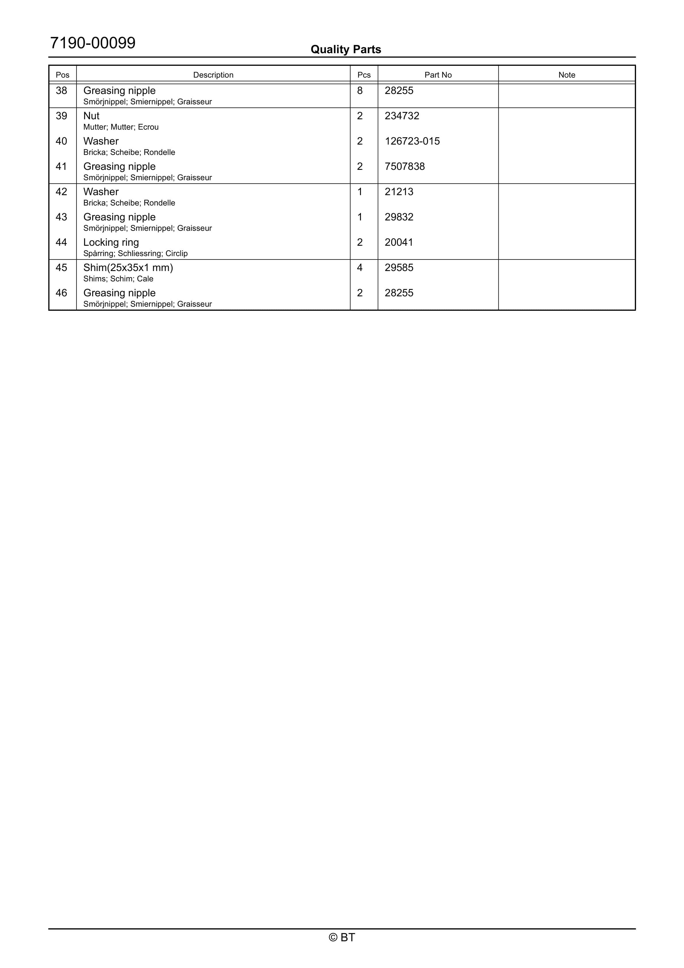 BT 600-TT, 602-TT, 608-TT, 609-TT, 610-TT, 612-TT, 620-TT (AC) Quality Parts 212162