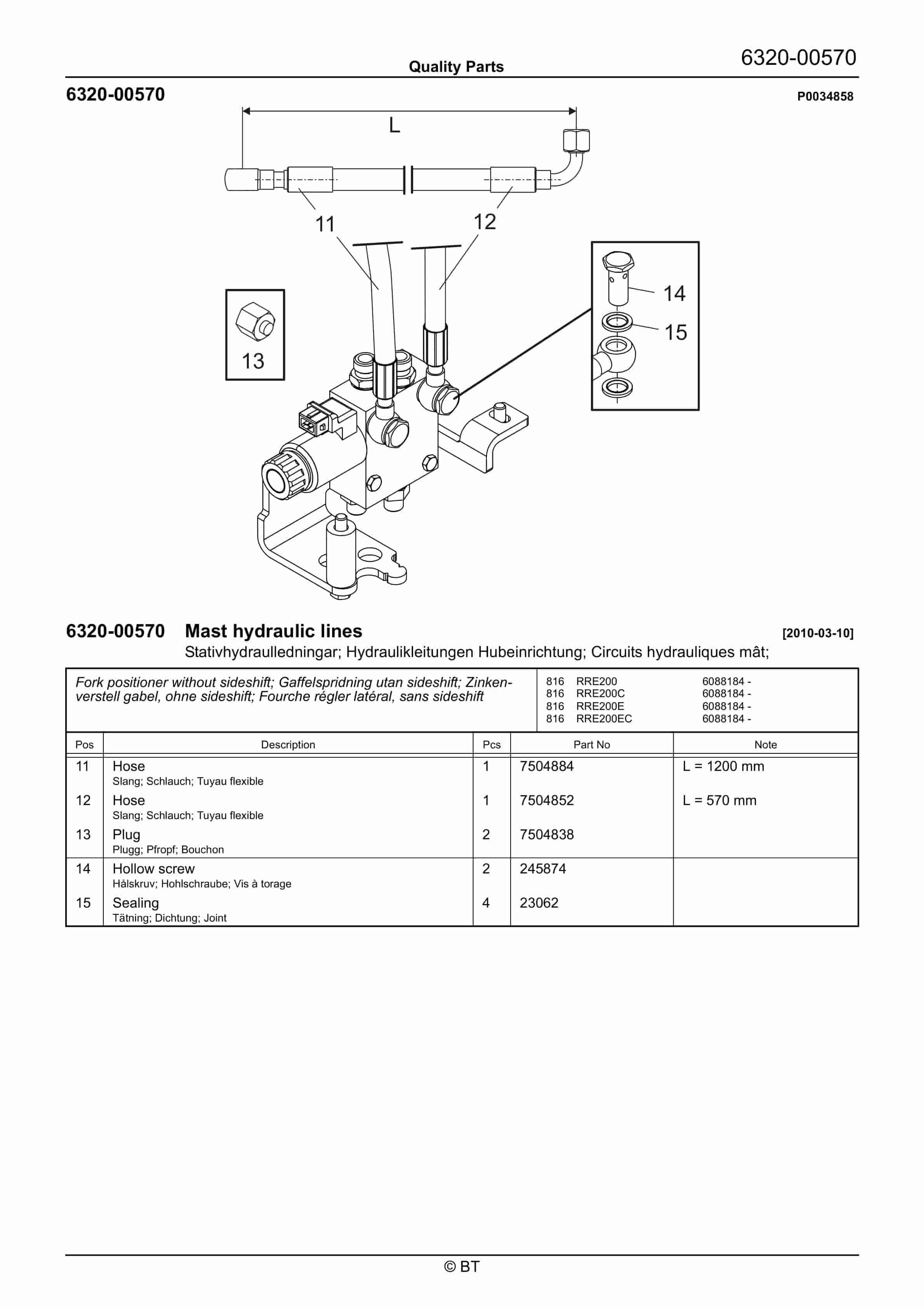 BT RRE200, RRE200C, RRE200E, RRE200EC Quality Parts 7520664