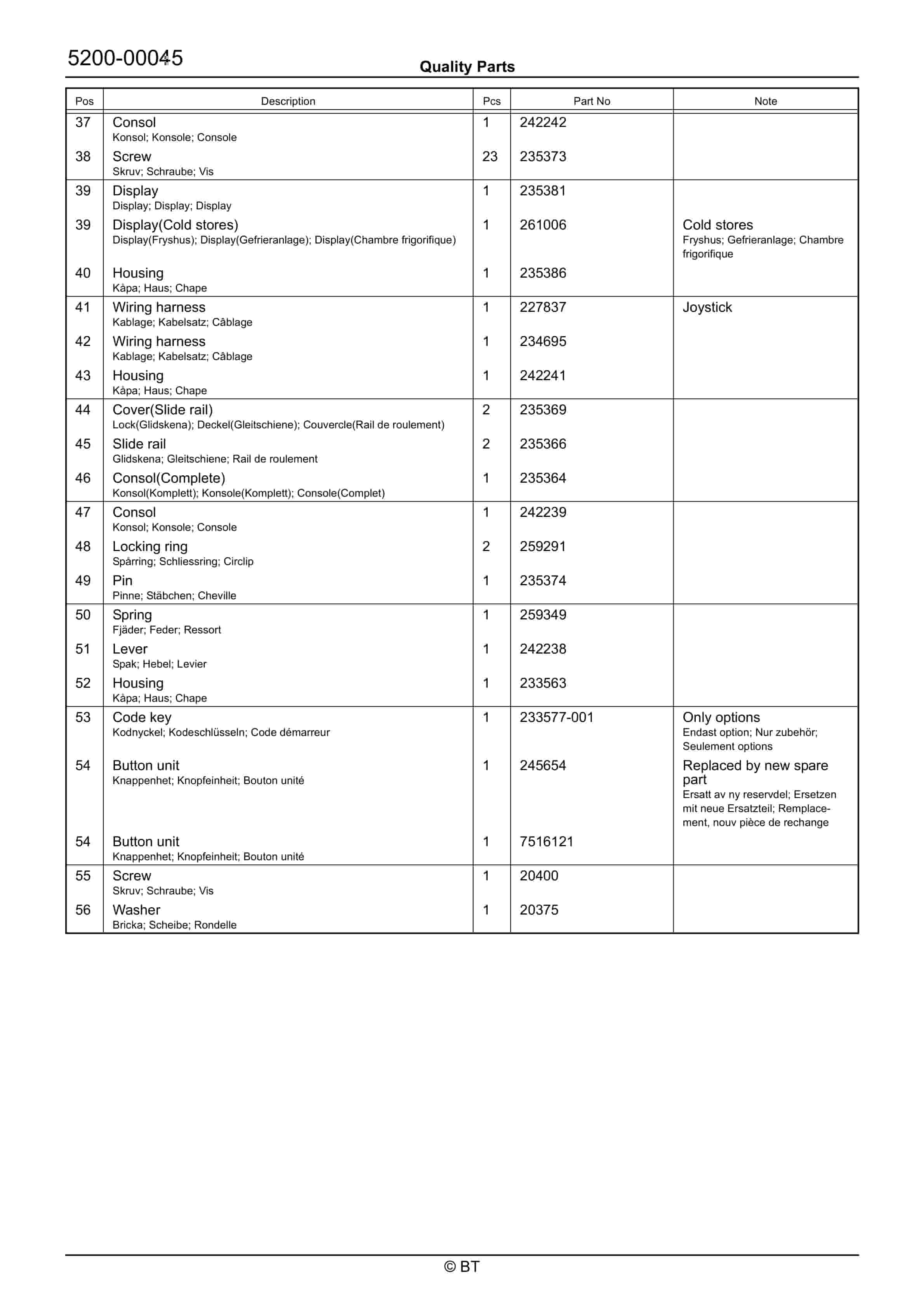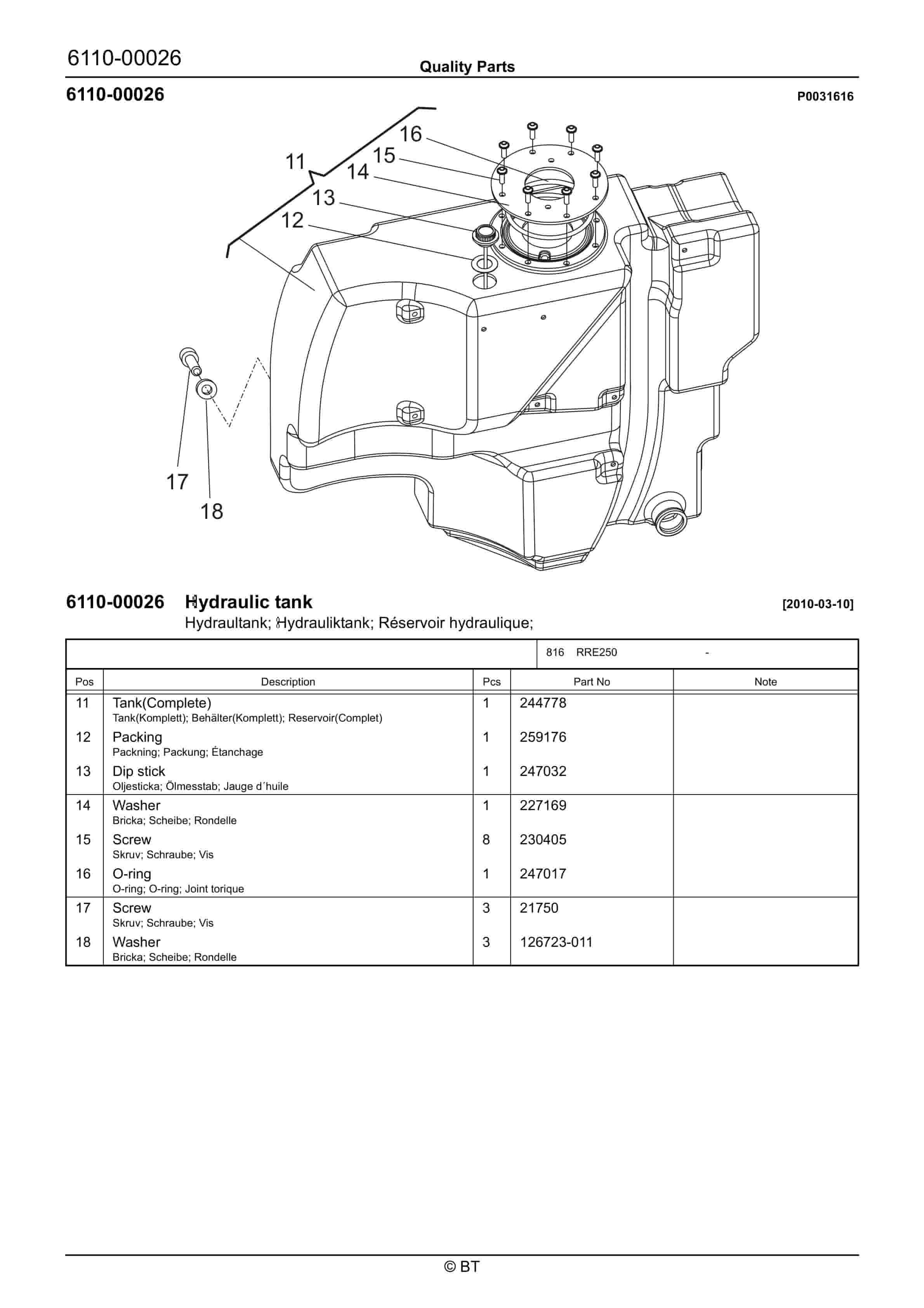 BT BTL20EW, BTL20EWO, BTL30EW, BTL30EWO, L20BR, L20BRO, L30BR, L30BRO Quality Parts 177967