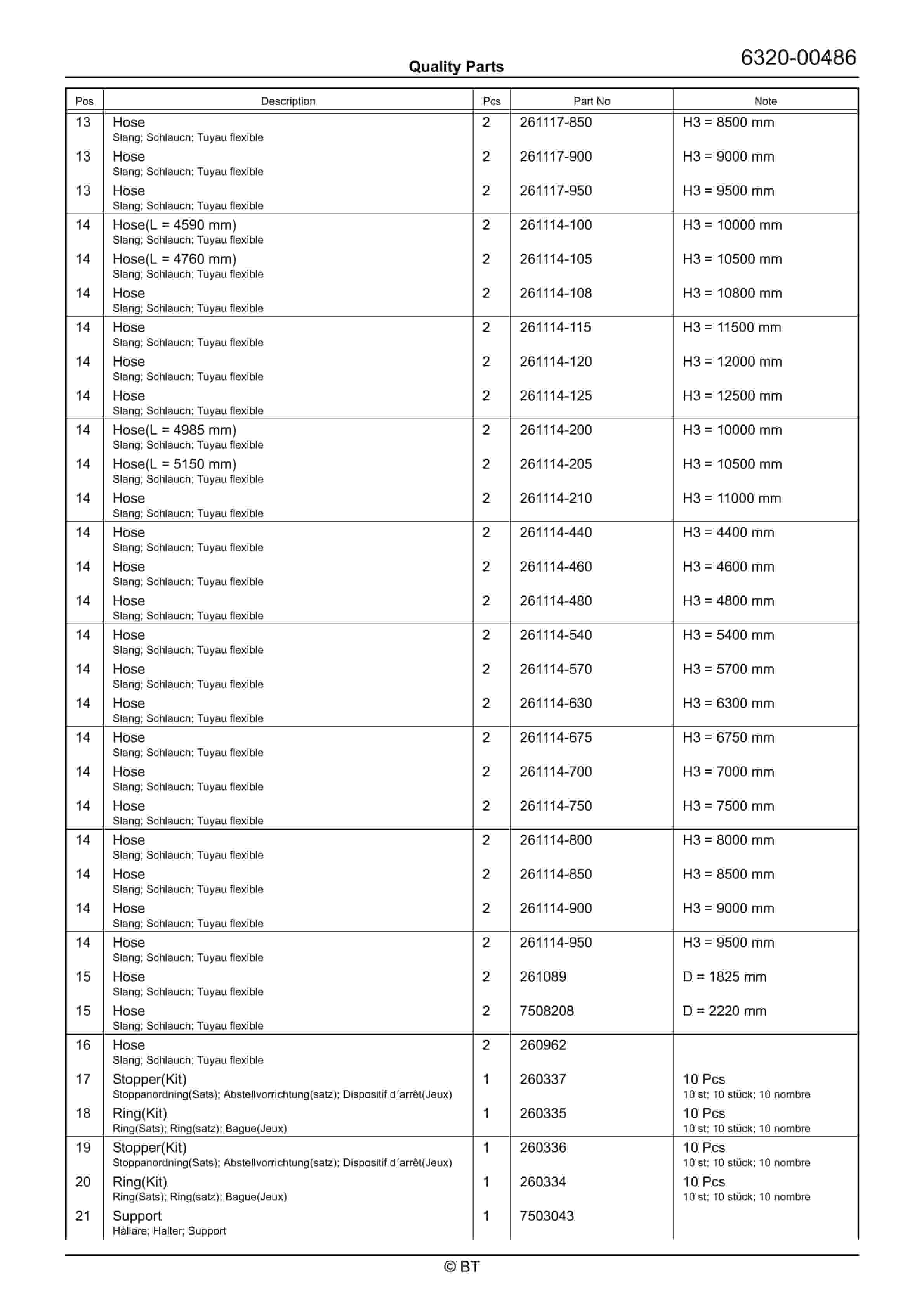 BT BTL20EW, BTL20EWO, BTL30EW, BTL30EWO, L20BR, L20BRO, L30BR, L30BRO Quality Parts 177967