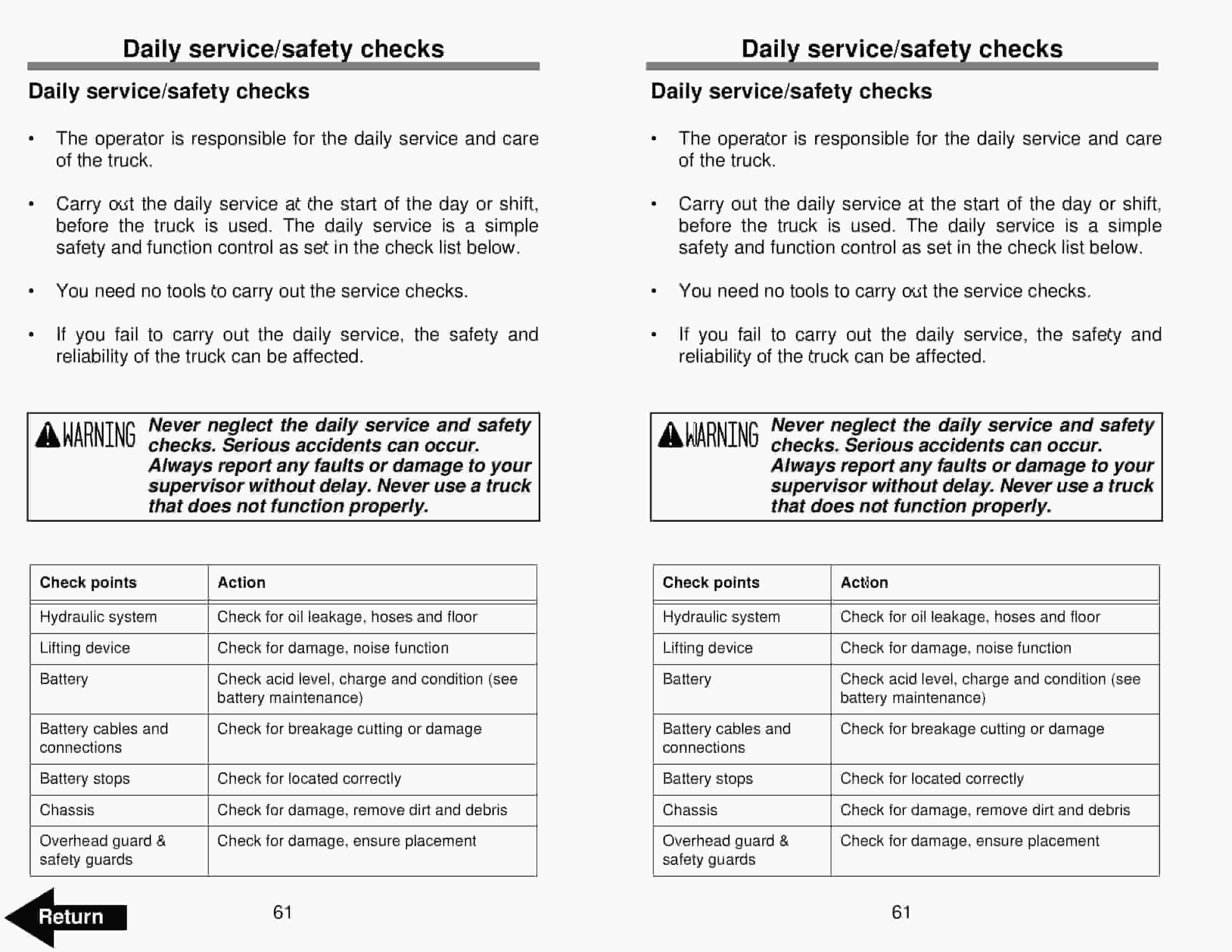 - 2.2. Before Operating the Truck