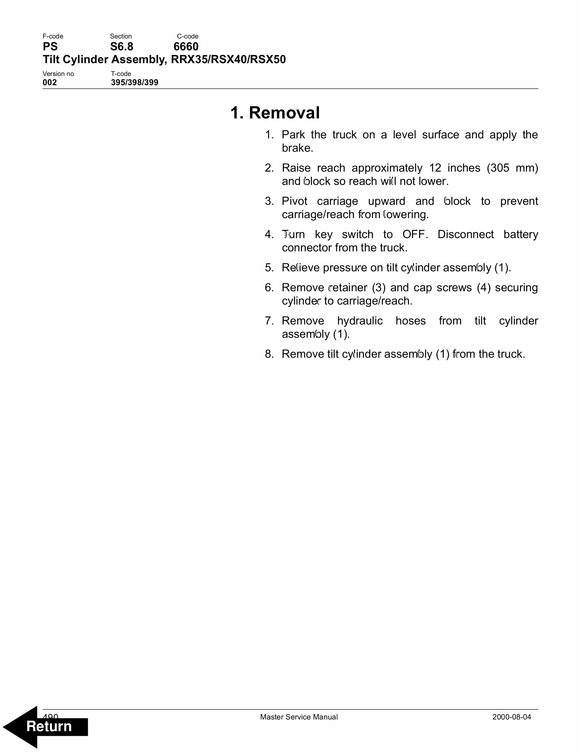 BT CMX60, CMX80 Electric Center Riding Pallet Truck Service Manual 302825-000