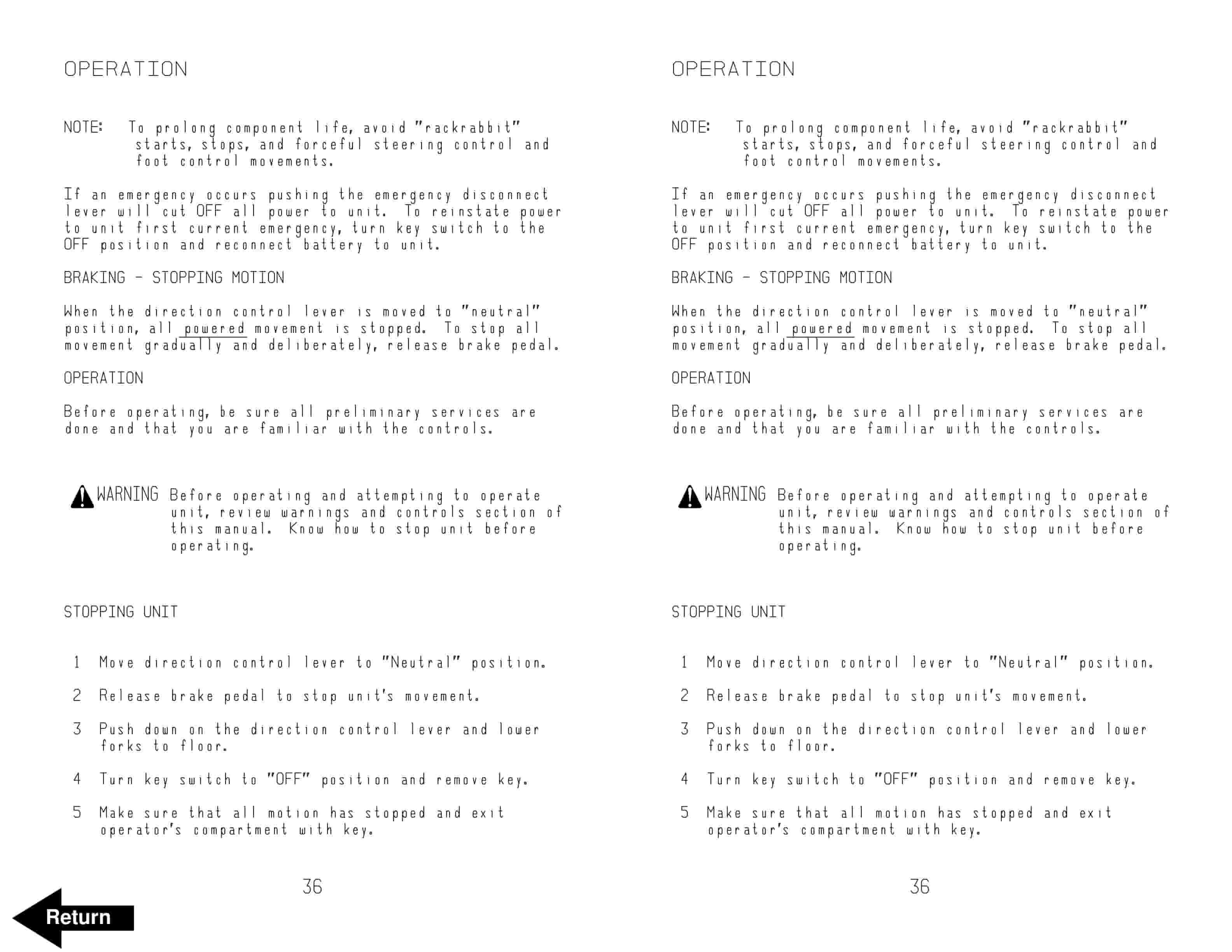 - 9.1.4. When a Powered Industrial Truck is to be Left Unattended
