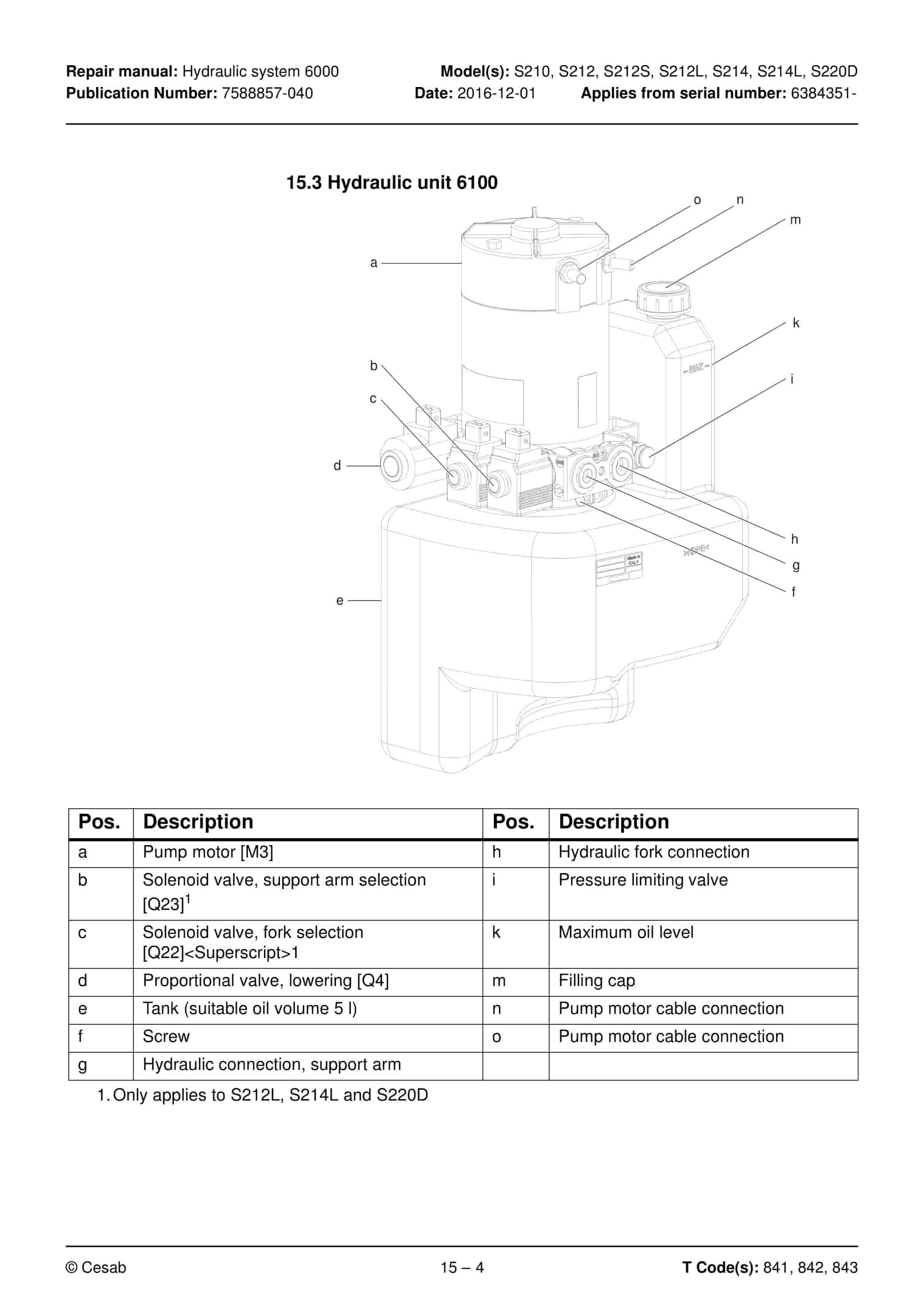 - 4.15. Support arm lowering (S212L, 214L, S220D)