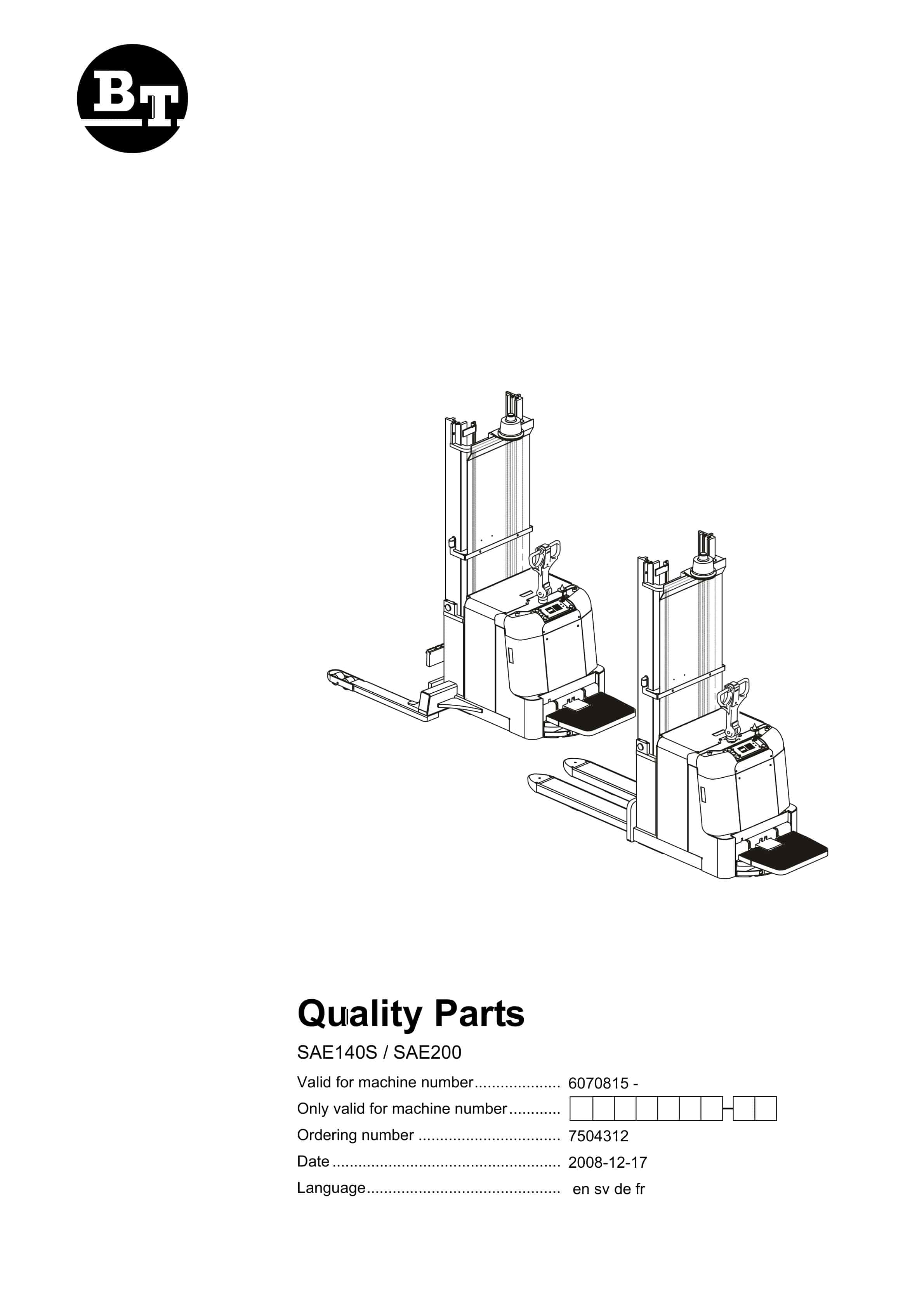 BT SAE140S, SAE200 Quality Parts 7504312