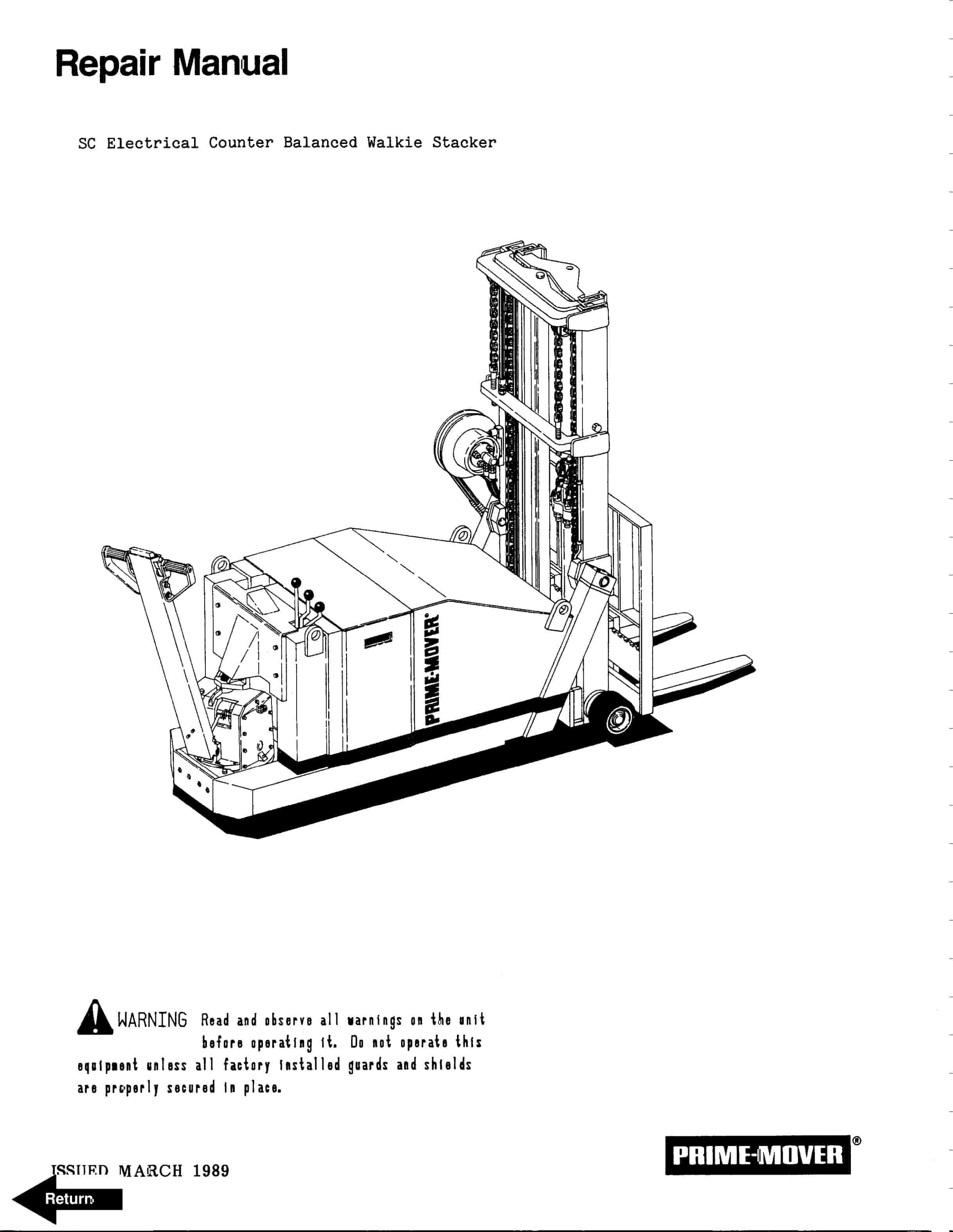 BT SC Electric Counter Balanced Walkie Stacker Repair Manual 300376-000