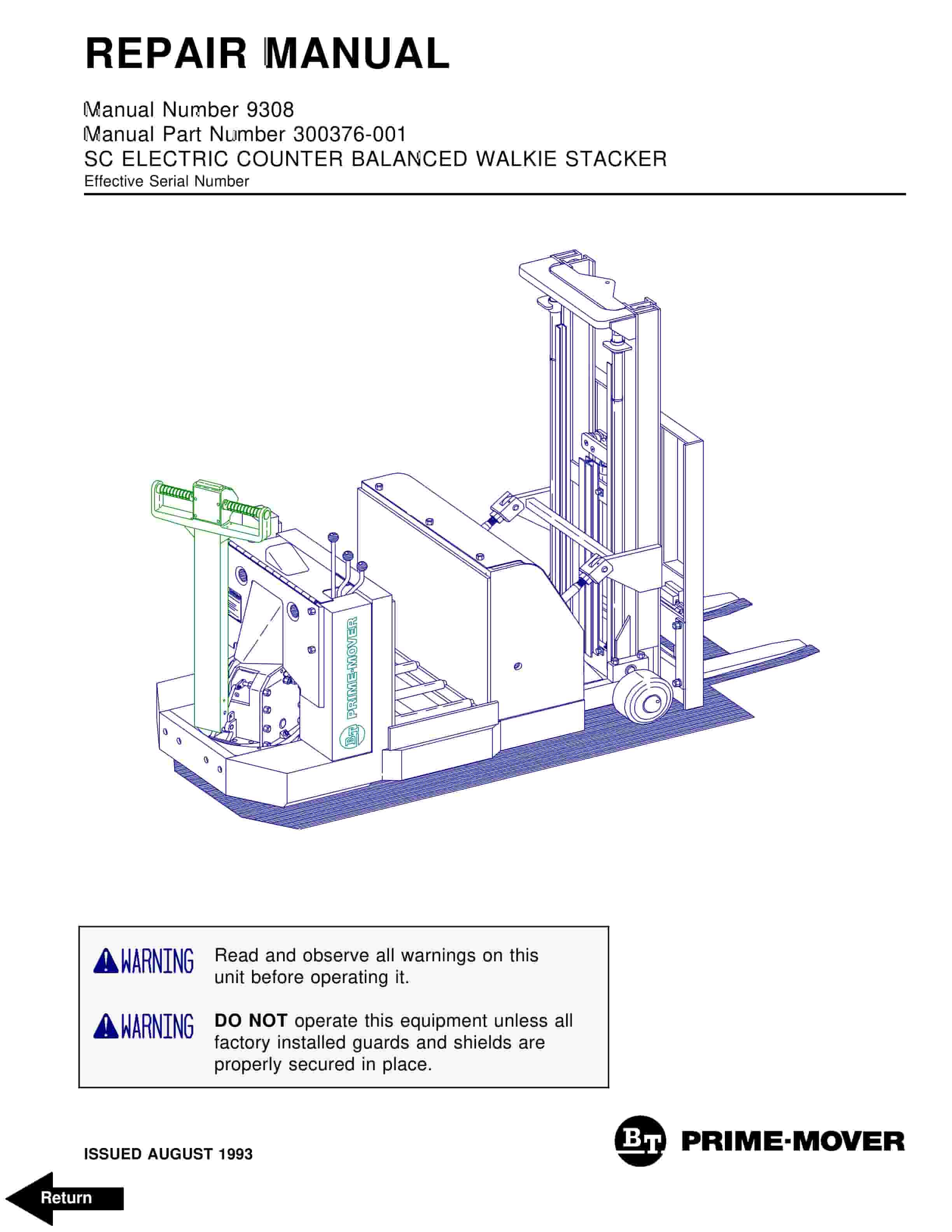 BT SC Electric Counter Balanced Walkie Stacker Repair Manual 300376-001