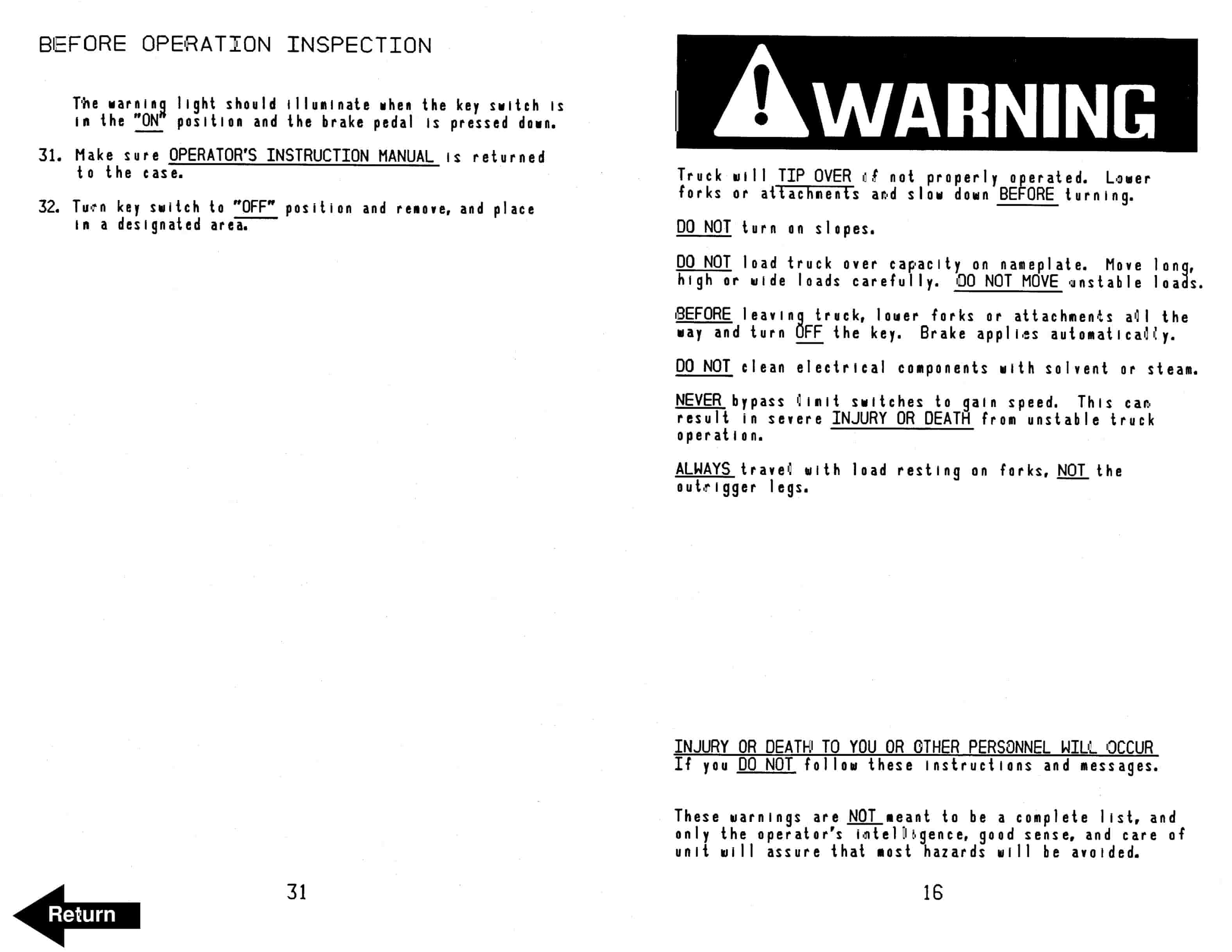 - 12. Before Operation Inspection