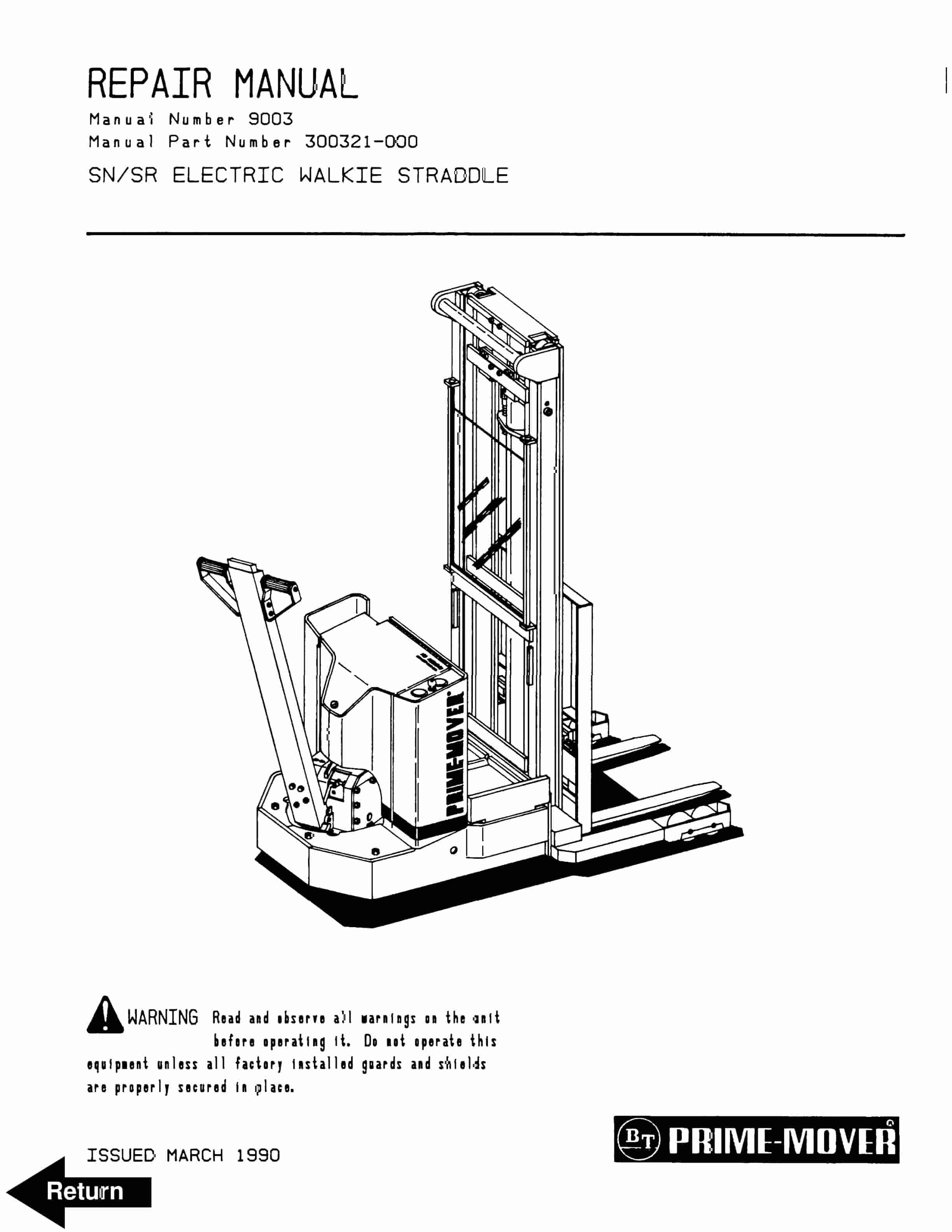 BT SN, SR Electric Walkie Straddle Repair Manual 300321-000