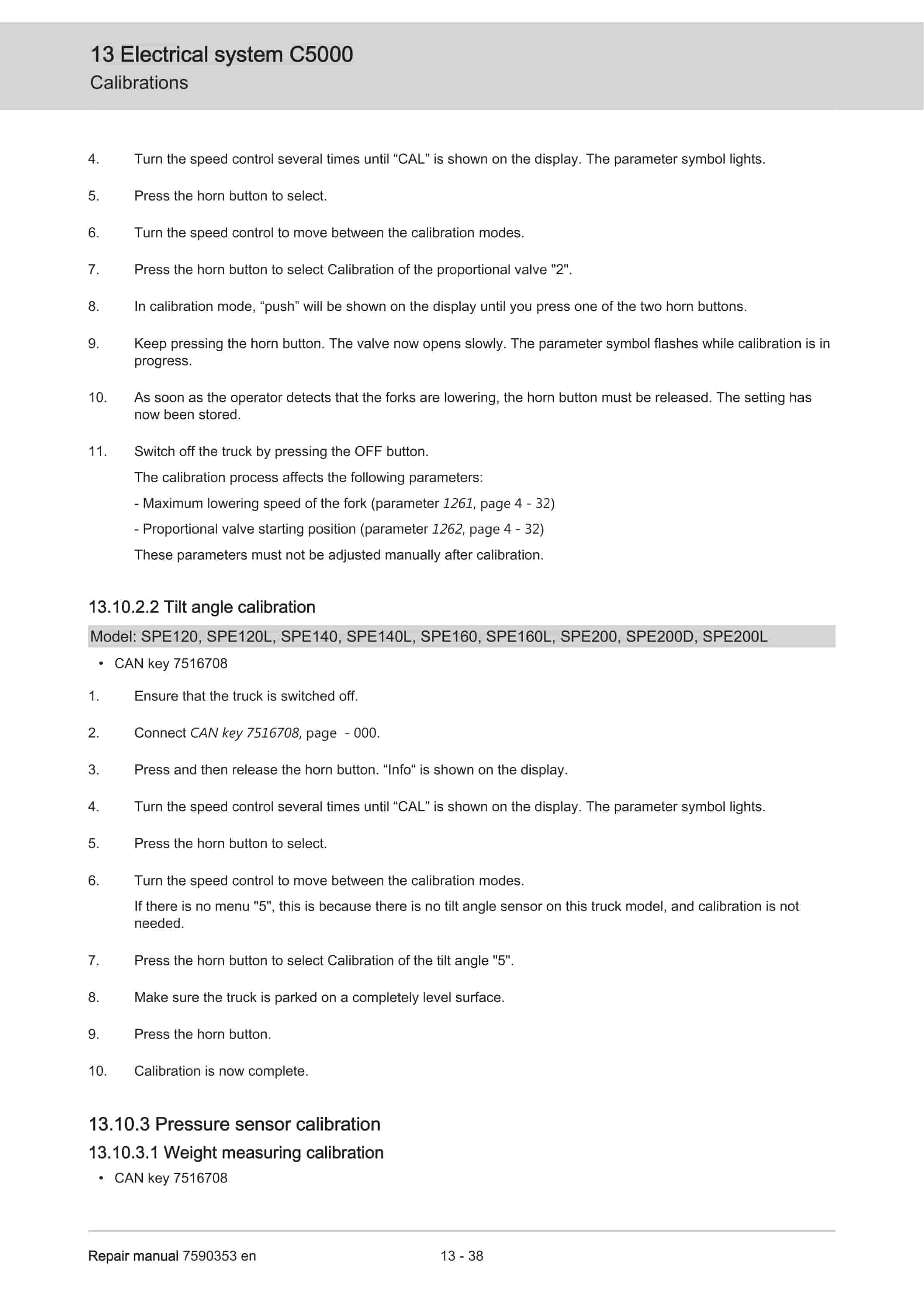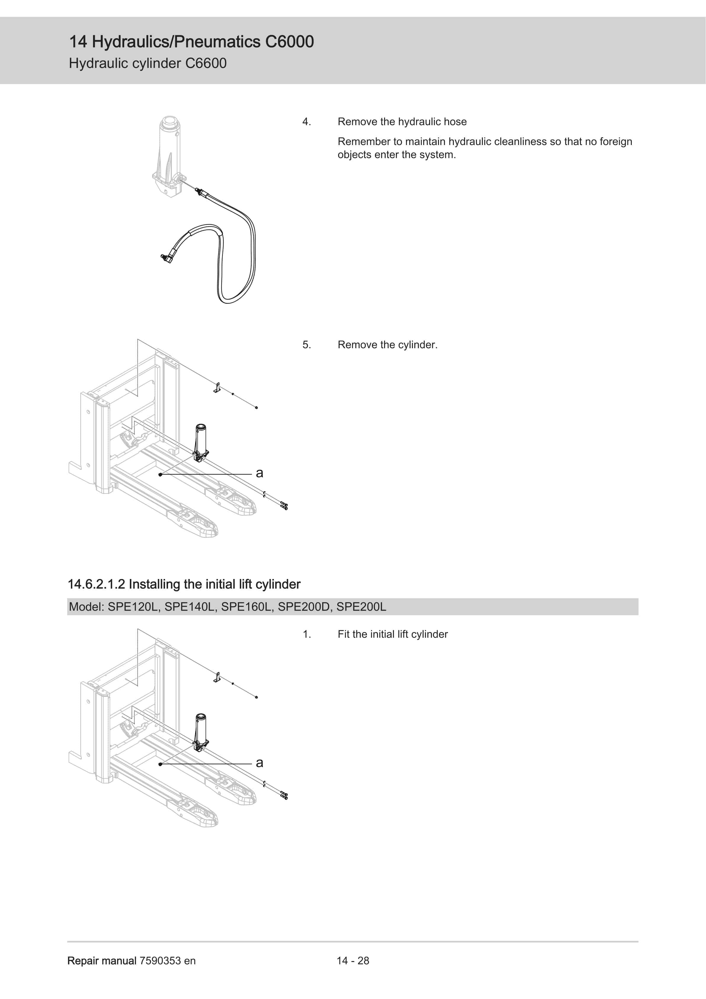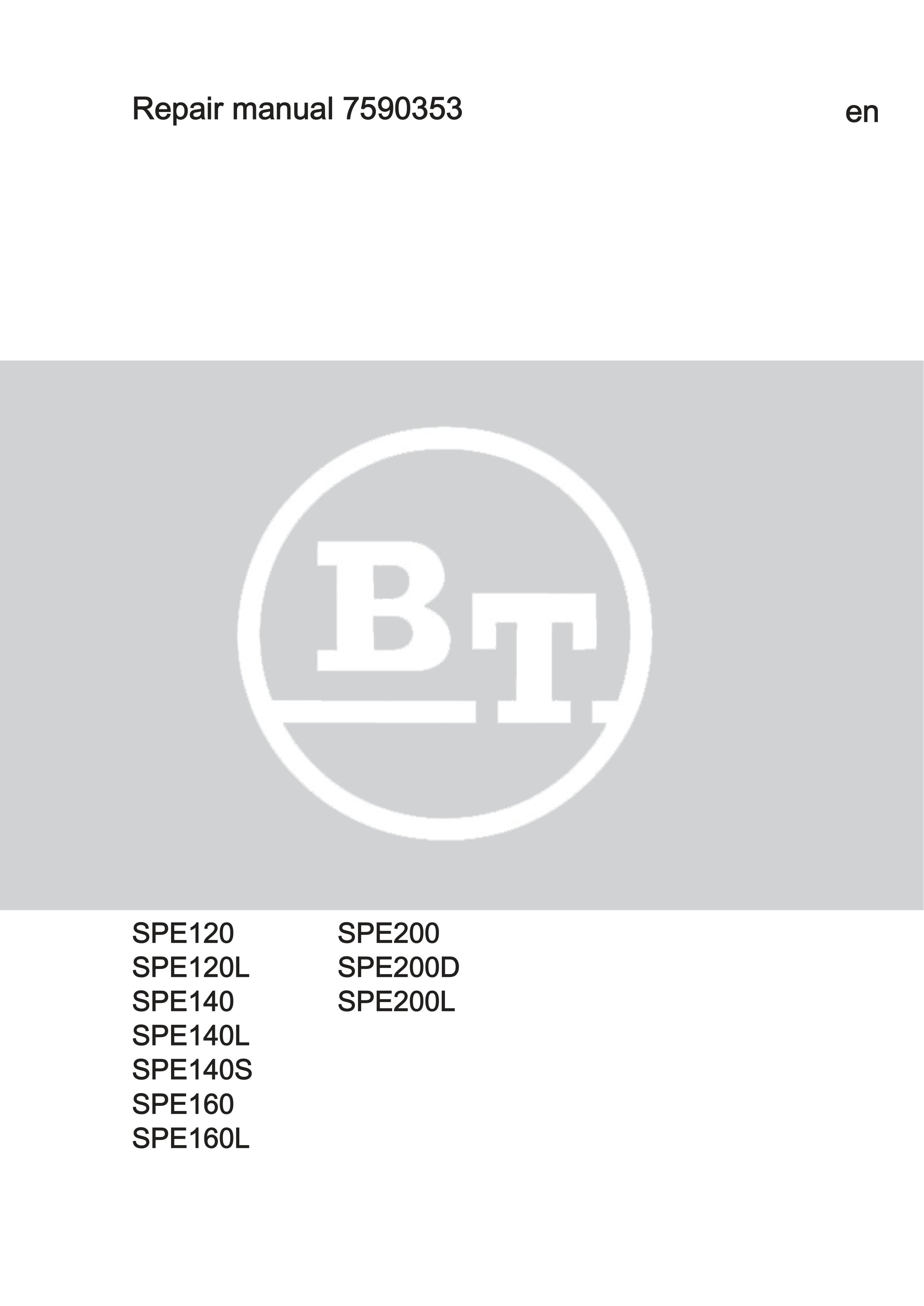 BT SPE120, SPE120L, SPE140, SPE140L, SPE140S, SPE160, SPE160L, SPE200, SPE200D, SPE200L Repair Manual 7590353