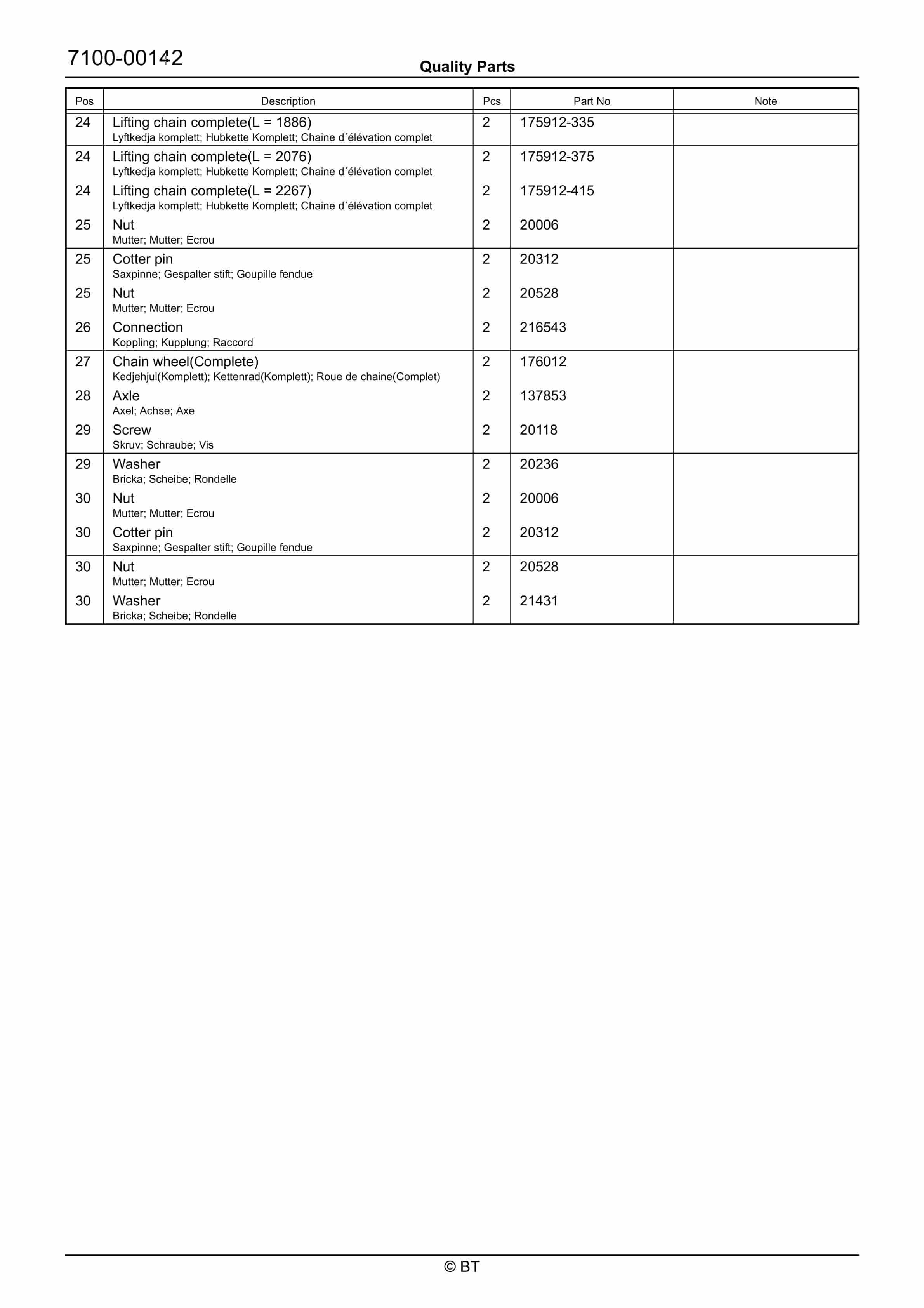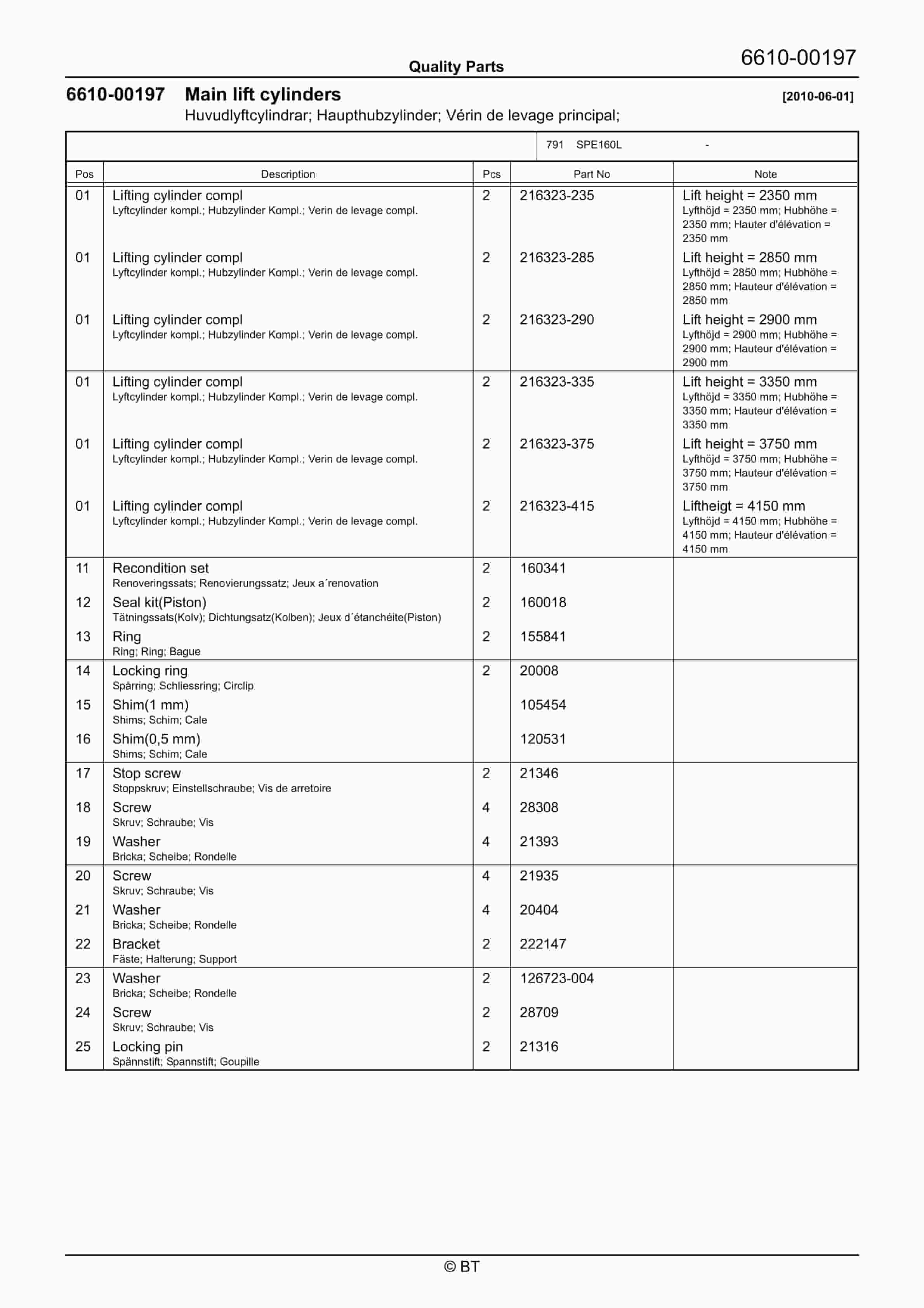 BT BTL2000, BTL2000I, BTL2000K, BTL2000O, BTL2000Q, BTL2000X, BTL2000U, BTL2000QX, Serial 11 Quality Parts 170417
