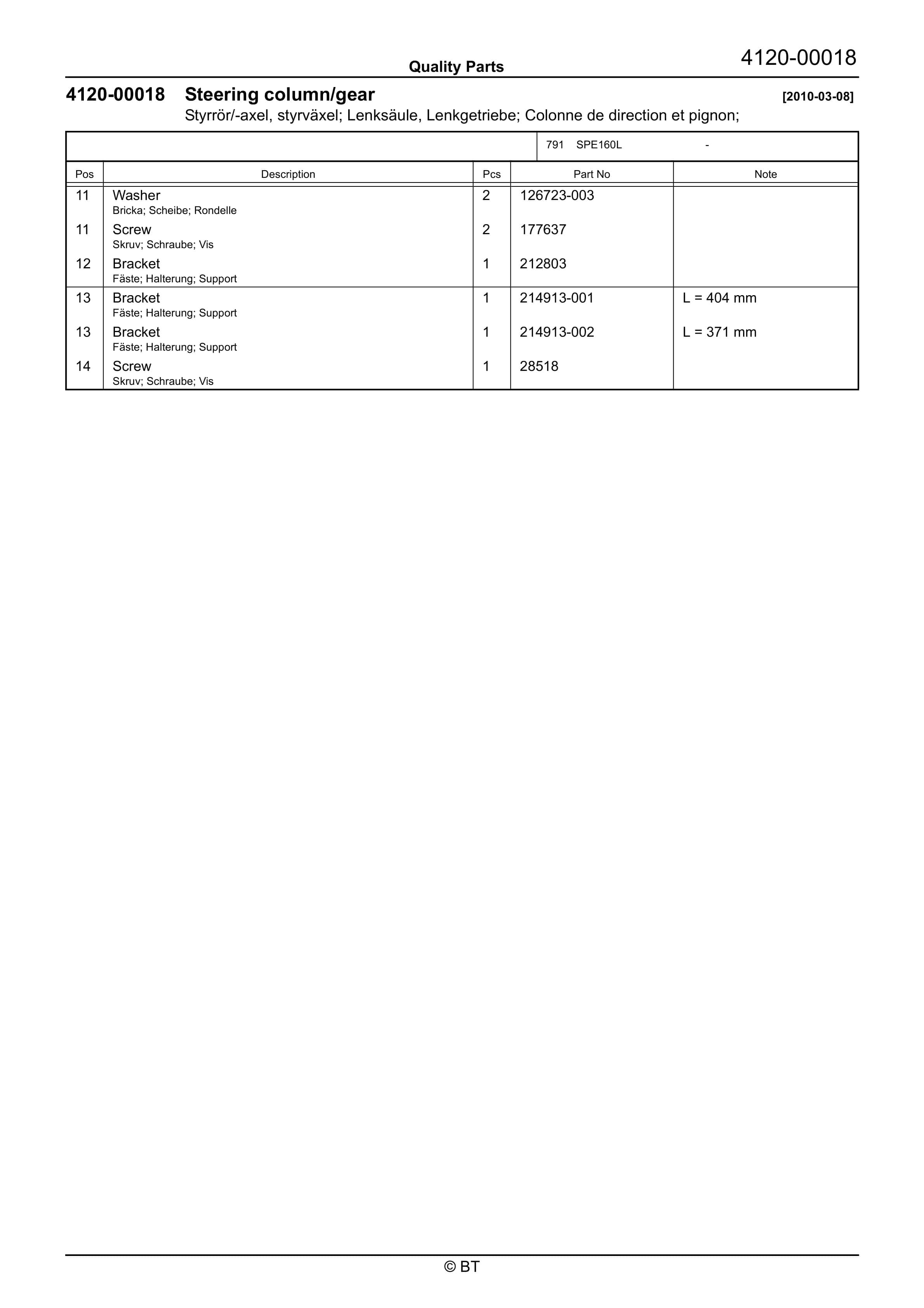 BT 602-TT, 608-TT, 609-TT, 610-TT, 612-TT, 620-TT (AC) Quality Parts 253711