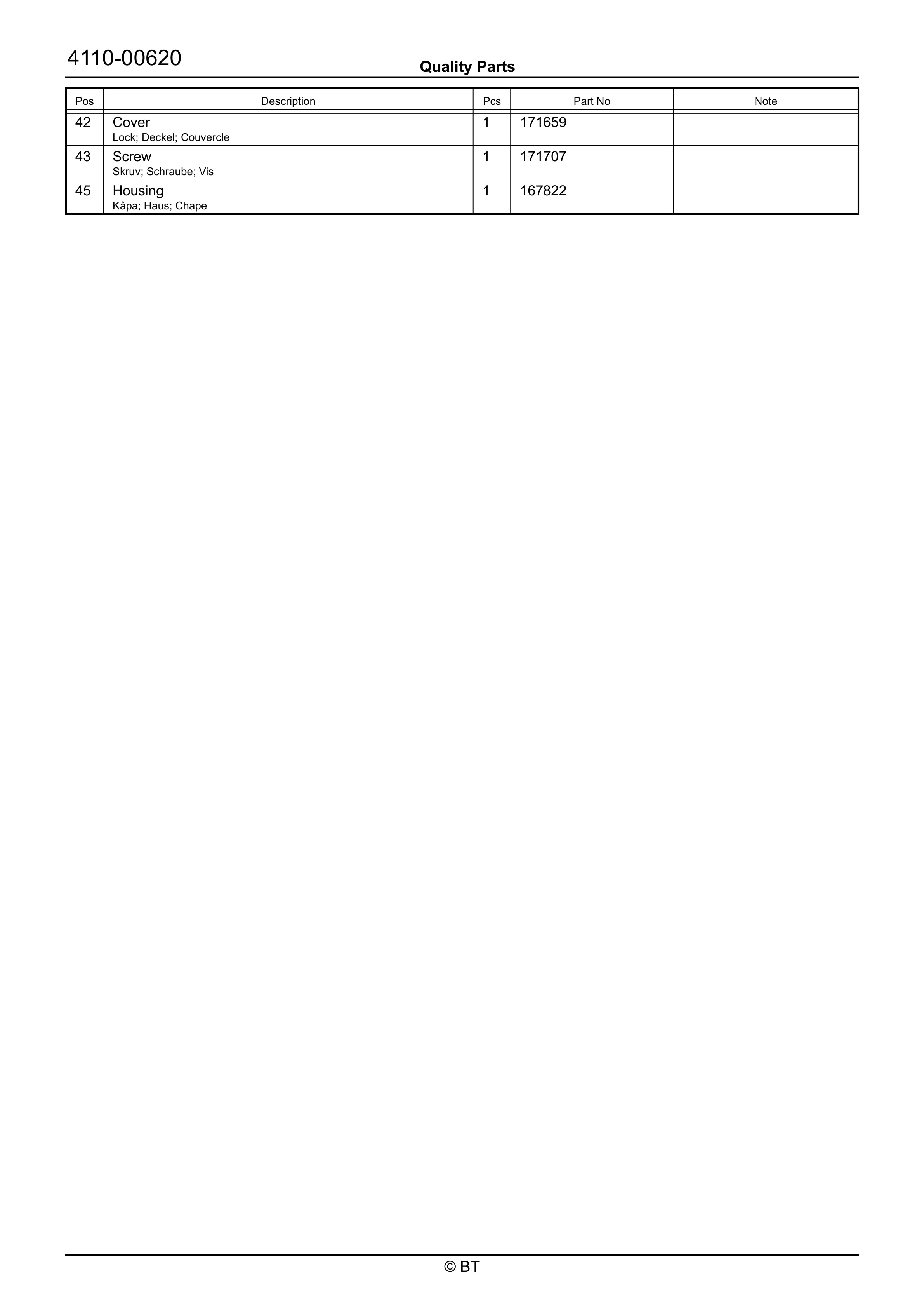 BT 602-TT, 608-TT, 609-TT, 610-TT, 612-TT, 620-TT (AC) Quality Parts 253711