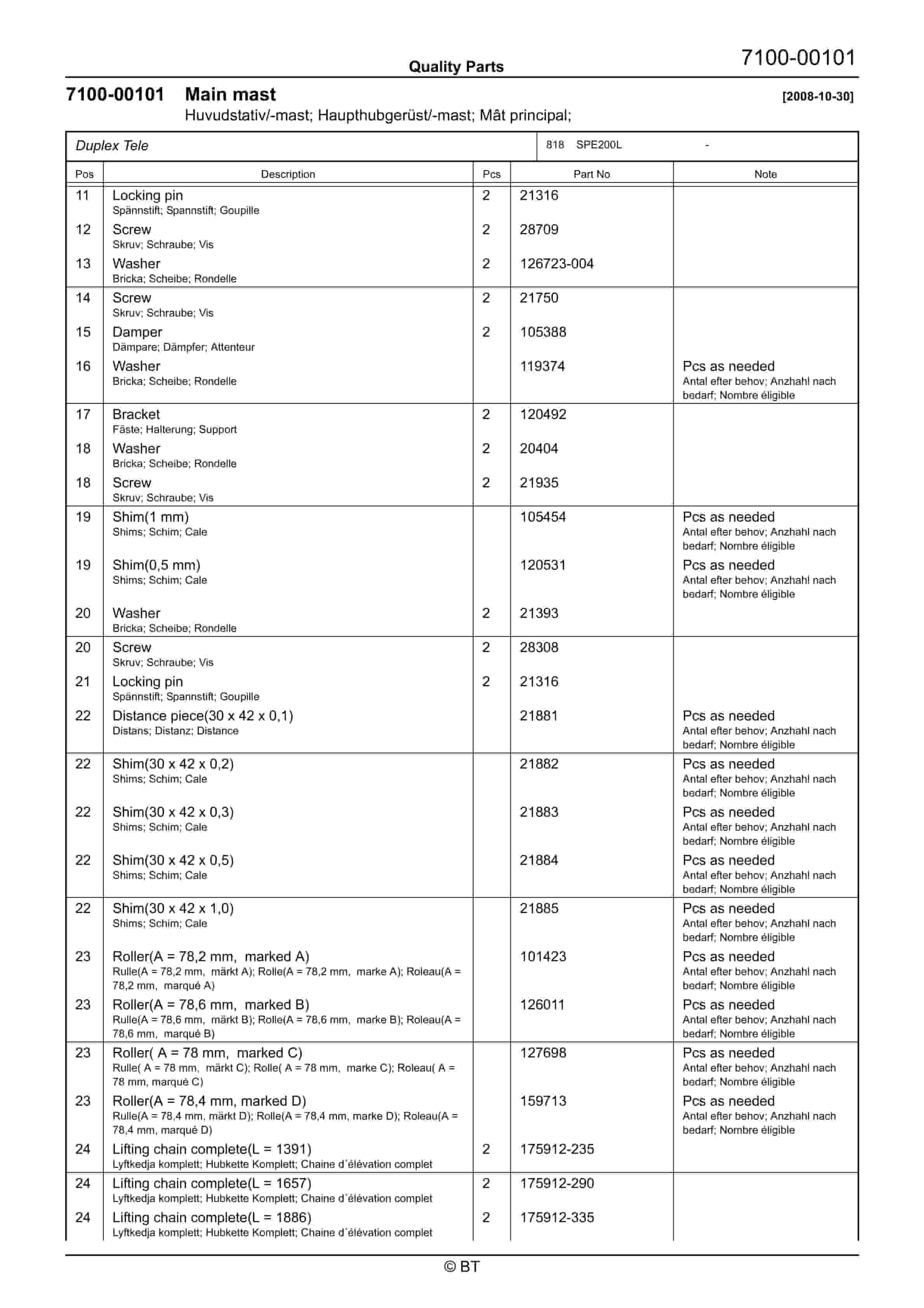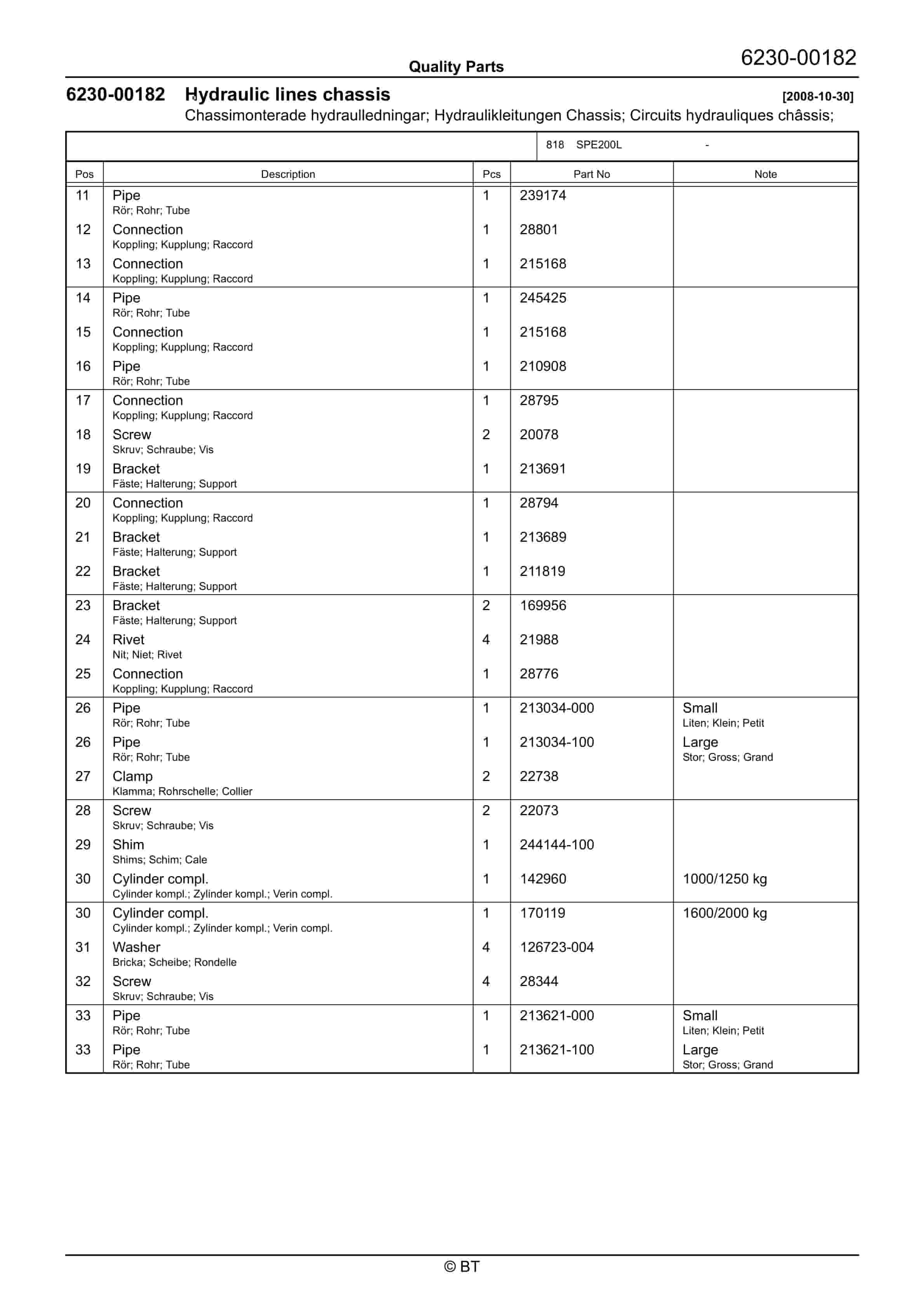 BT 602-TT, 608-TT, 609-TT, 610-TT, 612-TT, 620-TT (AC) Quality Parts 253711