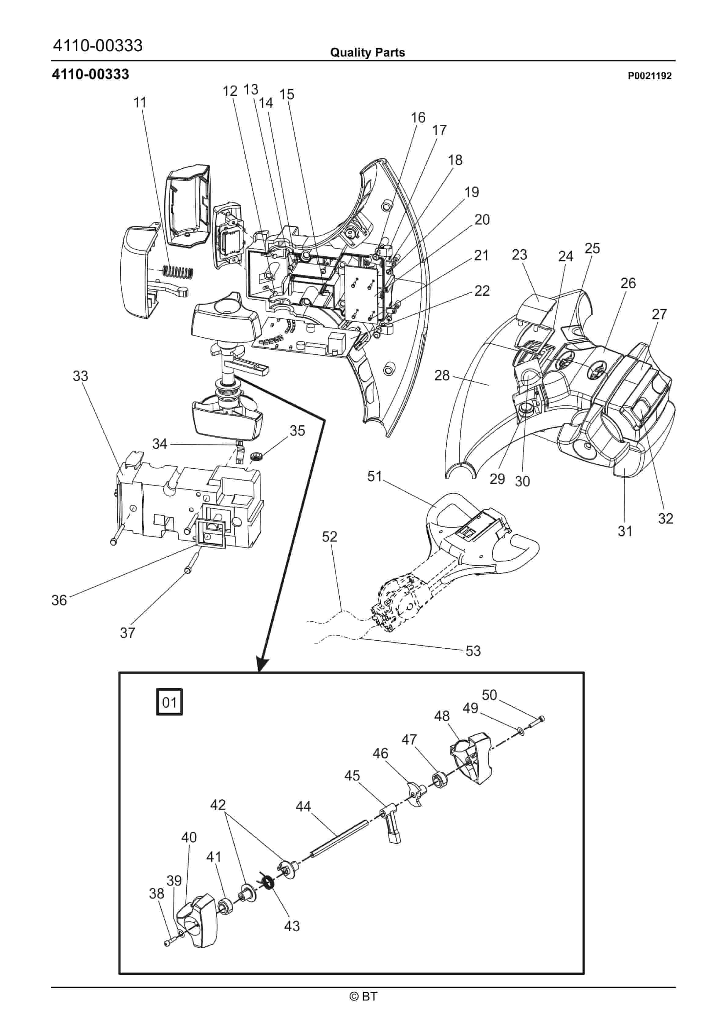 BT 3 Function Control Handle Parts List Reference 302145-000