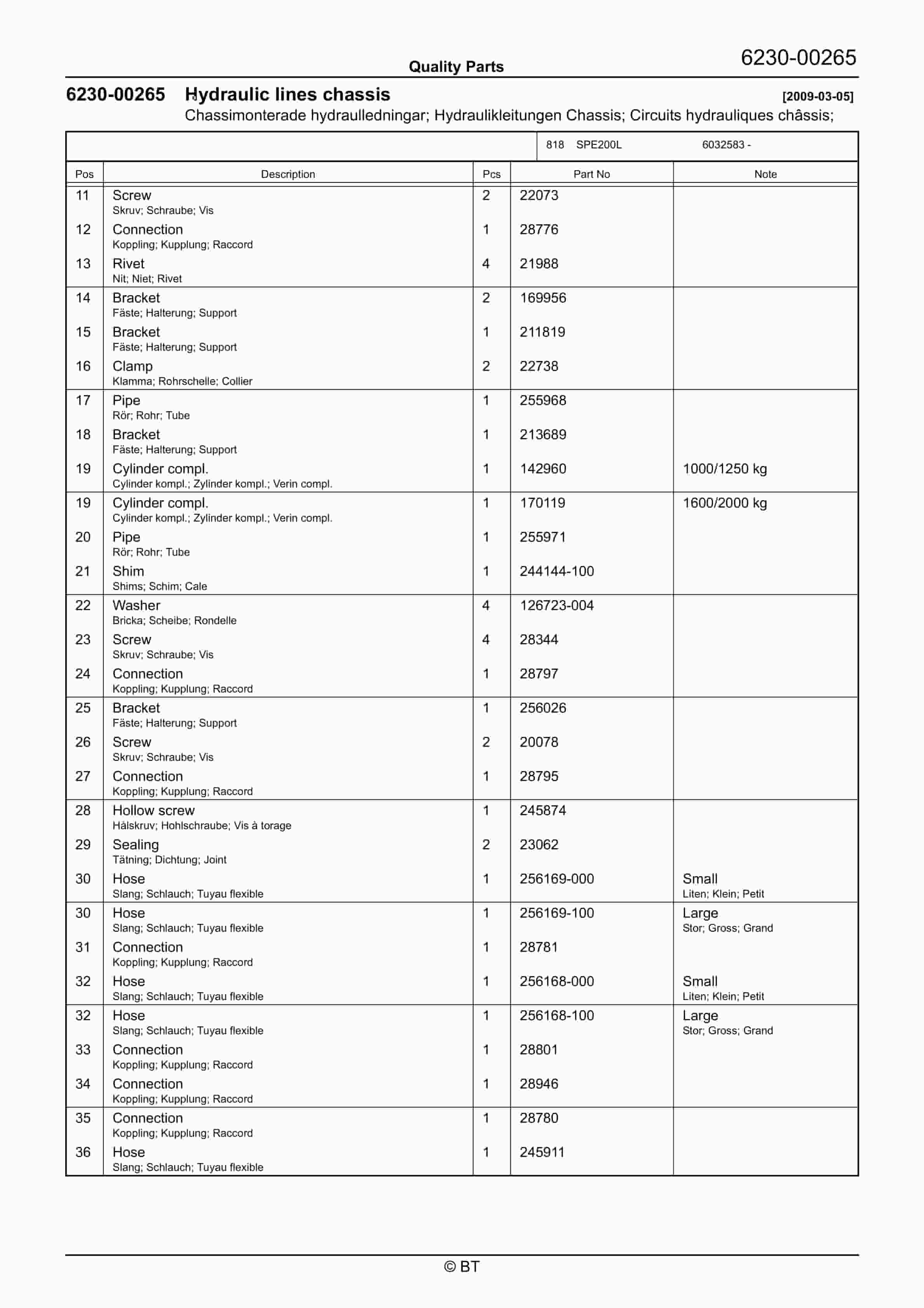 BT CARGO C3E 100R, C3E 130R, C3E 150R Spare Parts Catalog 0350190R1