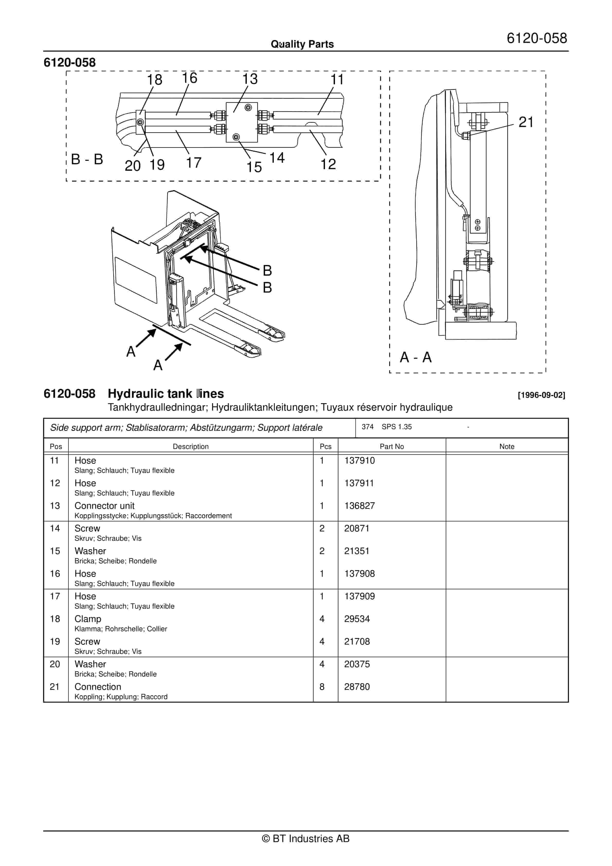 BT 602-TT, 608-TT, 609-TT, 610-TT, 612-TT, 620-TT Quality Parts 229210