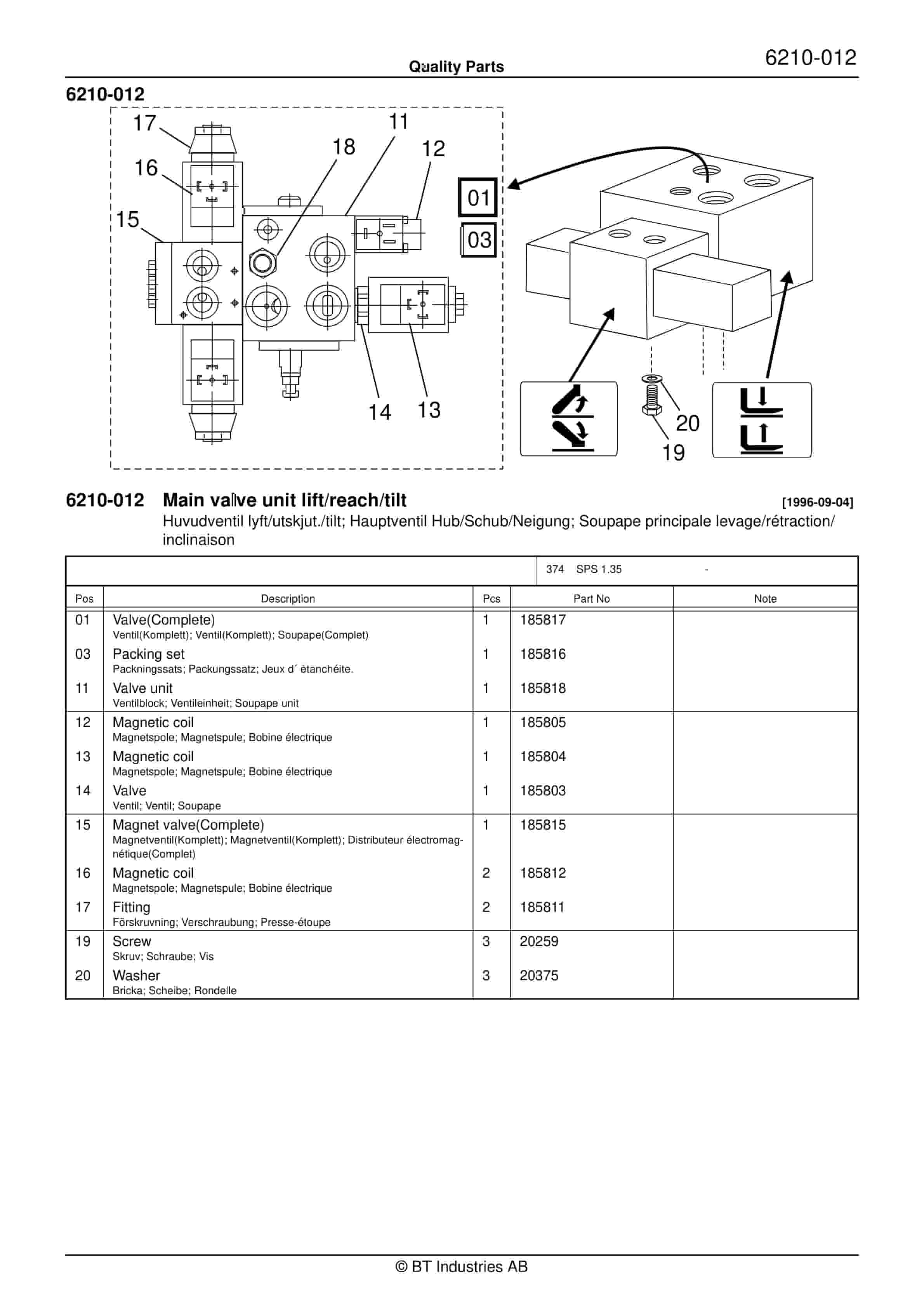 BT 602-TT, 608-TT, 609-TT, 610-TT, 612-TT, 620-TT Quality Parts 7501655
