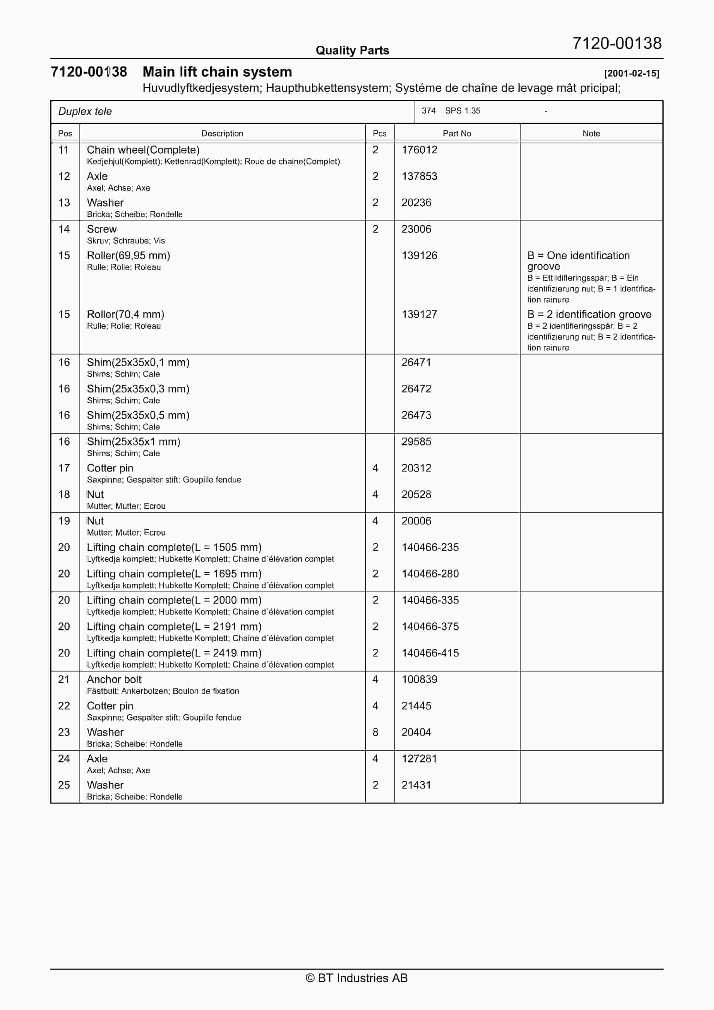BT SPS 1.35 – C030320-3 – C030320-4 Quality Parts 847746