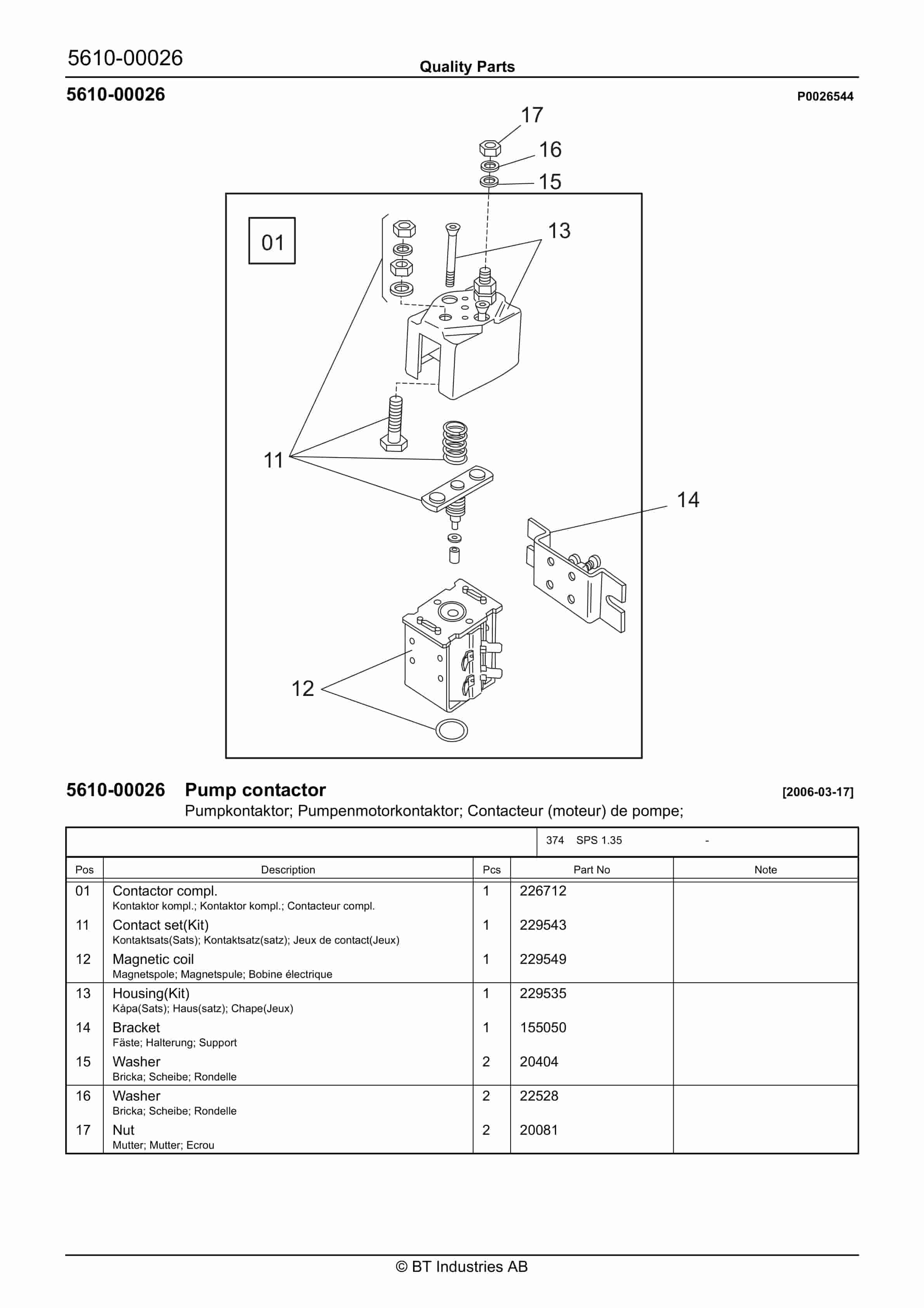 BT BTL20EW, BTL20EWO, BTL30EW, BTL30EWO, L20BR, L20BRO, L30BR, L30BRO Quality Parts 177967