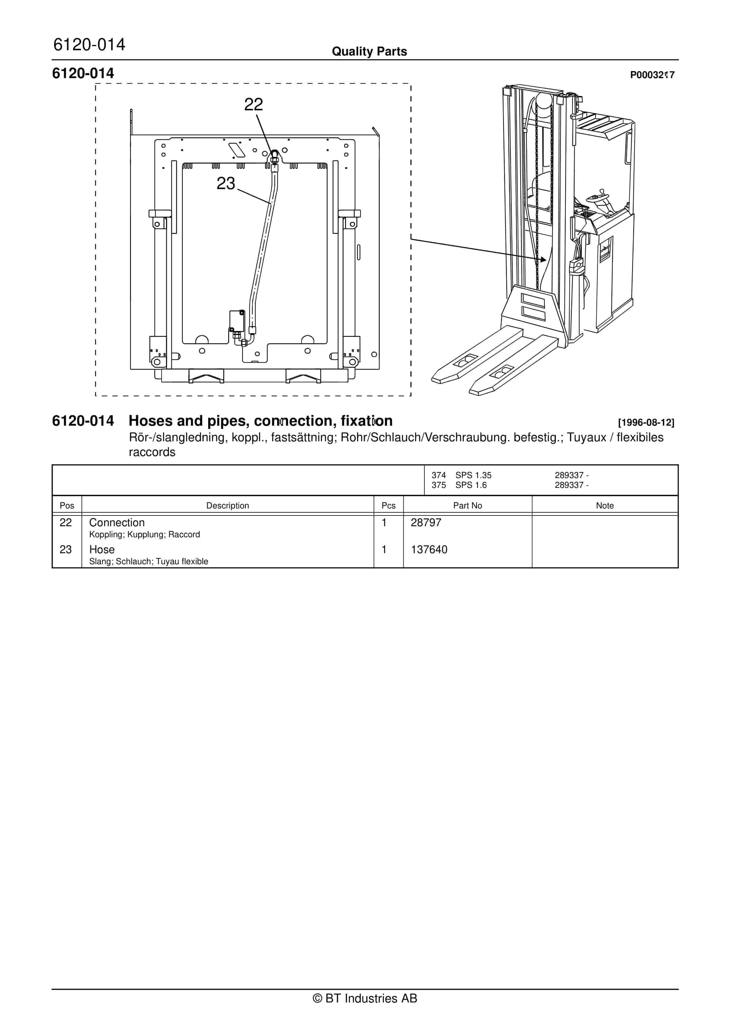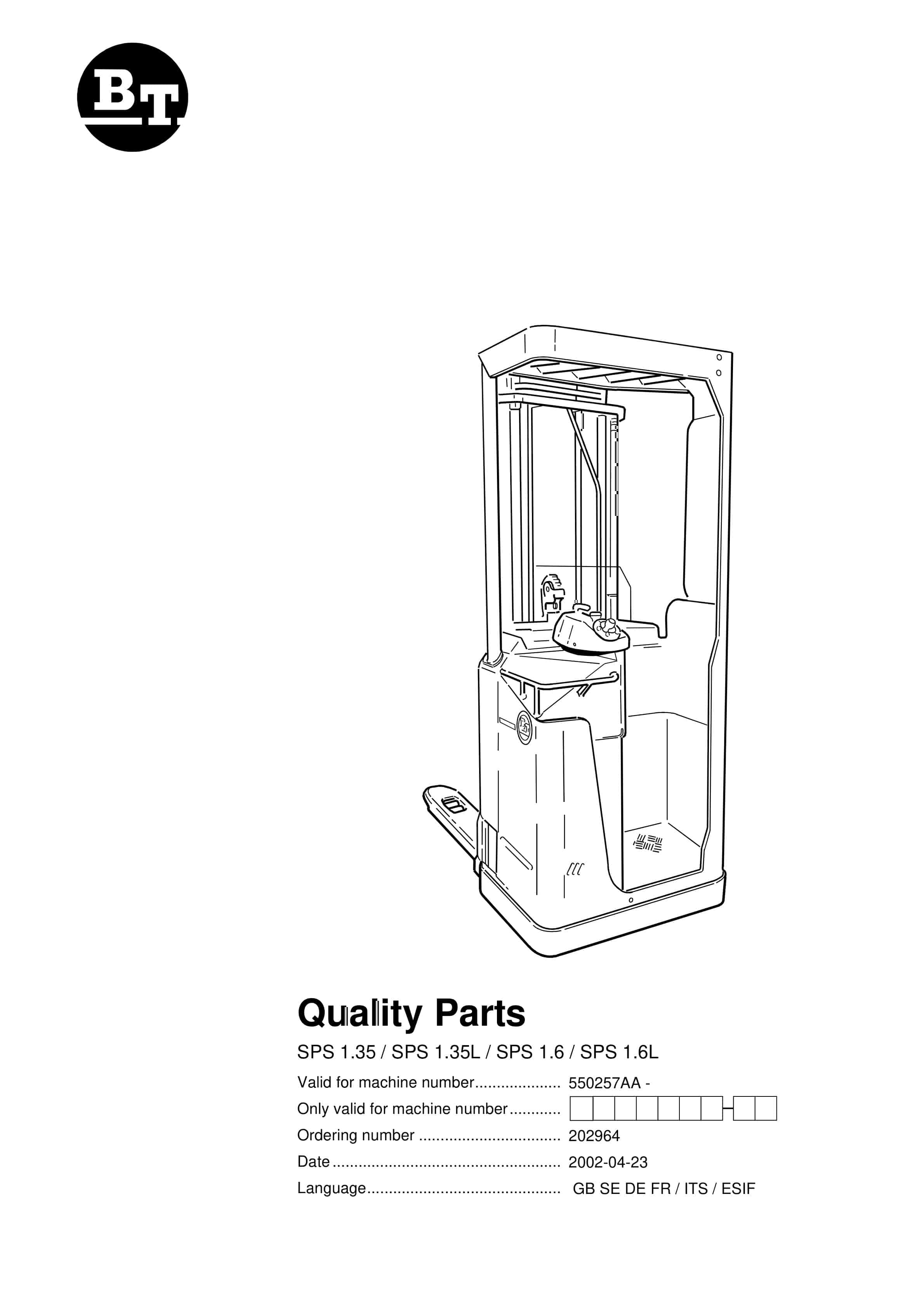 BT SPS 1.35, SPS 1.35L, SPS 1.6, SPS 1.6L Quality Parts 202964
