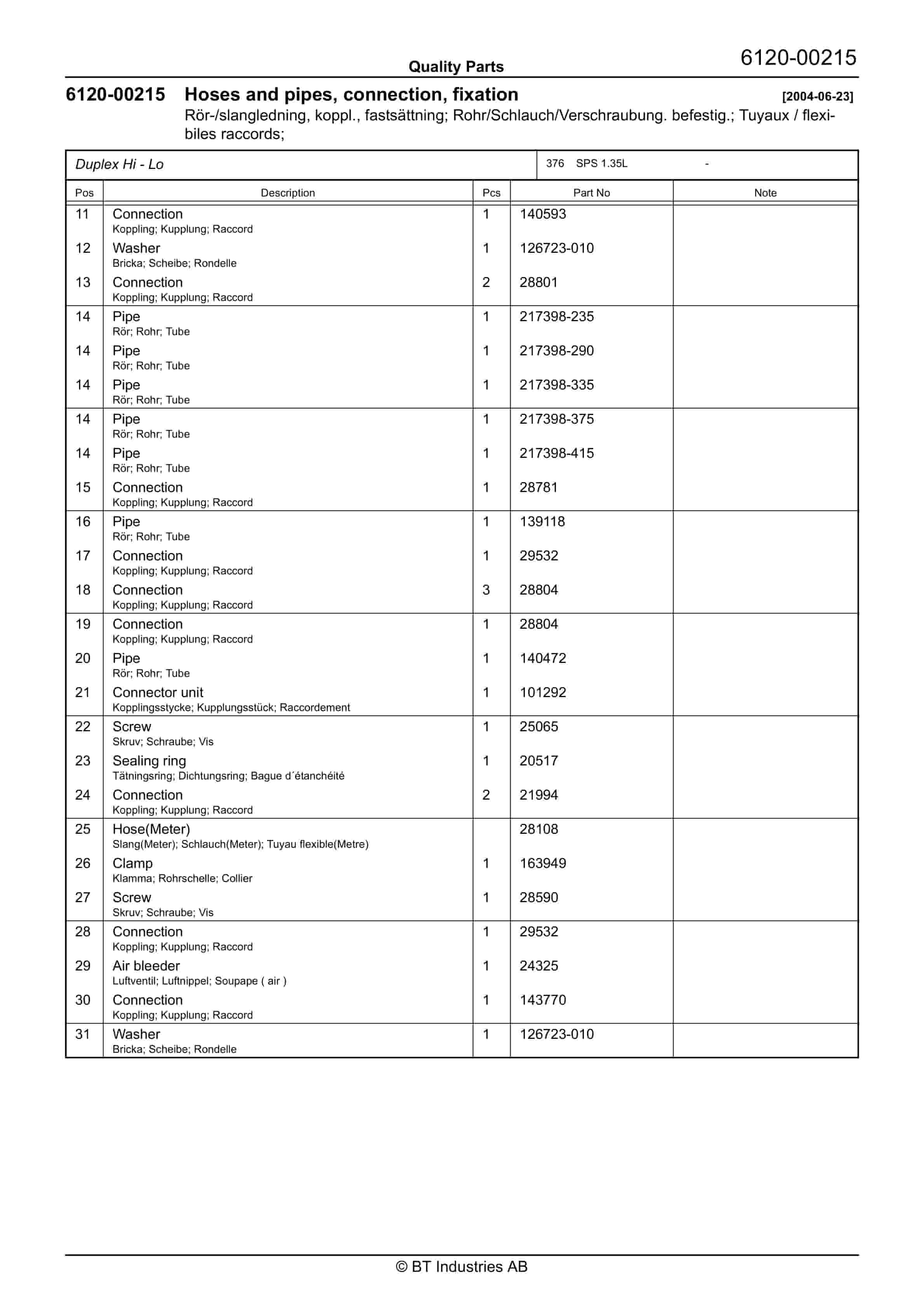 BT 602-TT, 608-TT, 609-TT, 610-TT, 612-TT, 620-TT Quality Parts 07904570EB