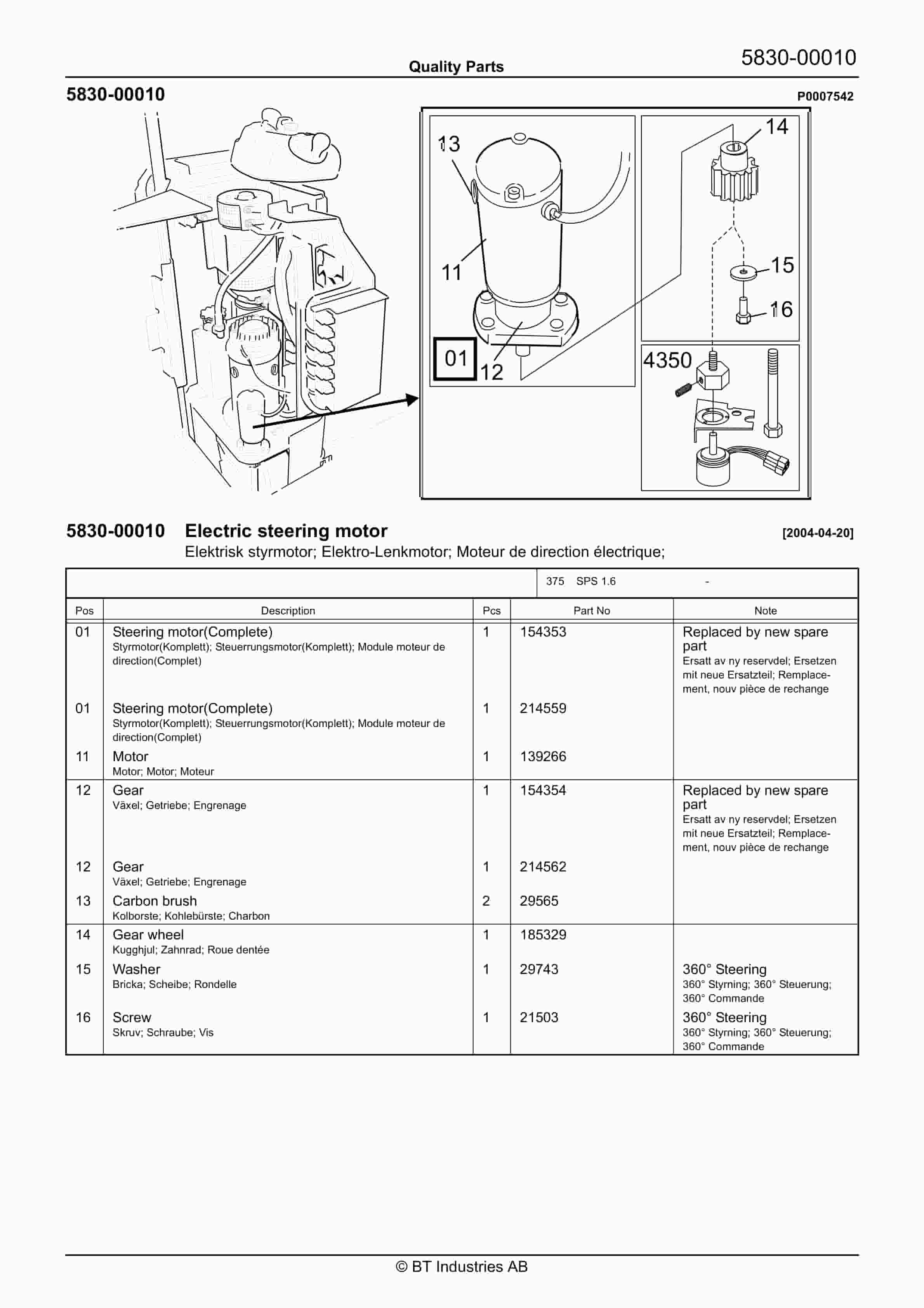 BT 600-TT, 602-TT, 608-TT, 609-TT, 610-TT, 612-TT, 620-TT (AC) Quality Parts 212162
