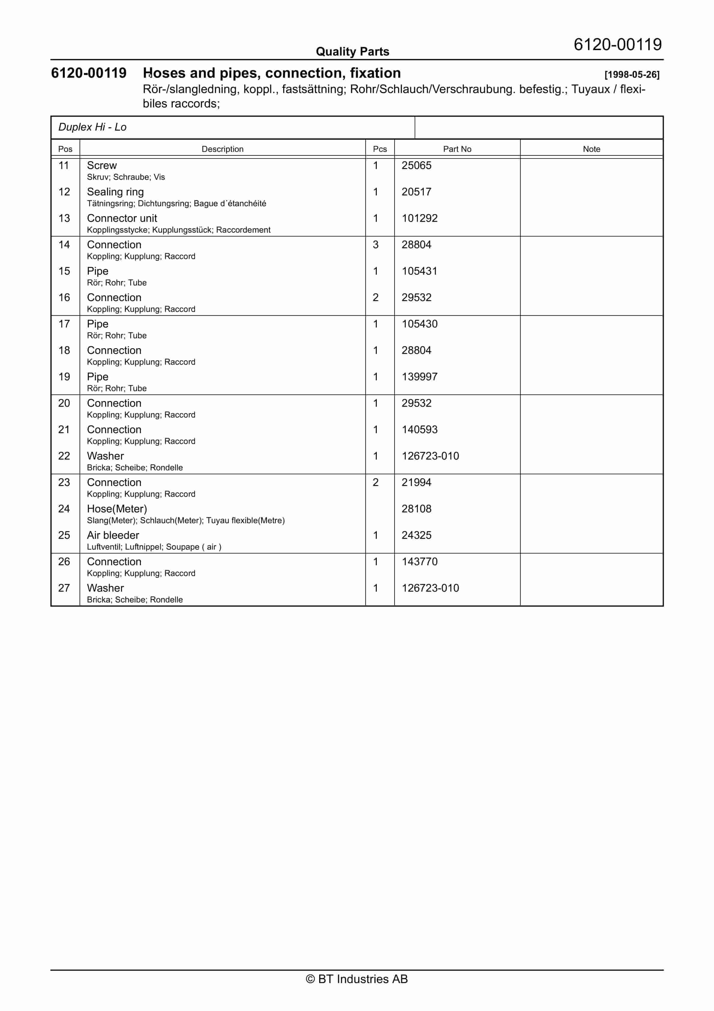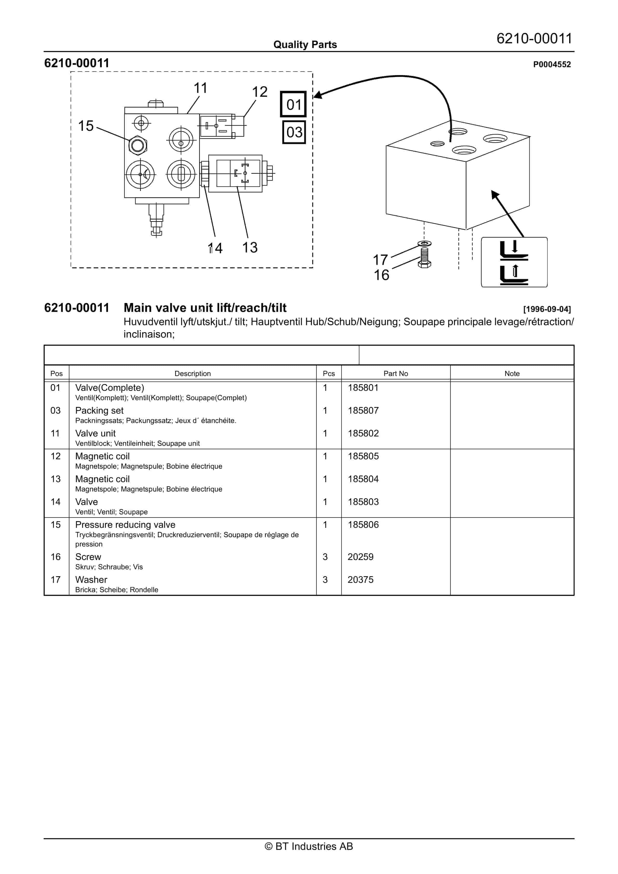 BT 602-TT, 608-TT, 609-TT, 610-TT, 612-TT, 620-TT (AC) Quality Parts 253711