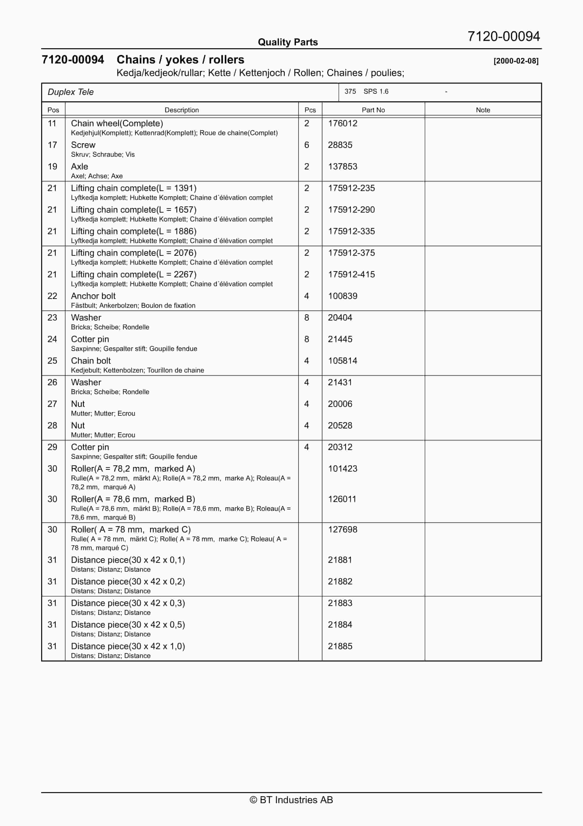 BT 602-TT, 608-TT, 609-TT, 610-TT, 612-TT, 620-TT (AC) Quality Parts 253711