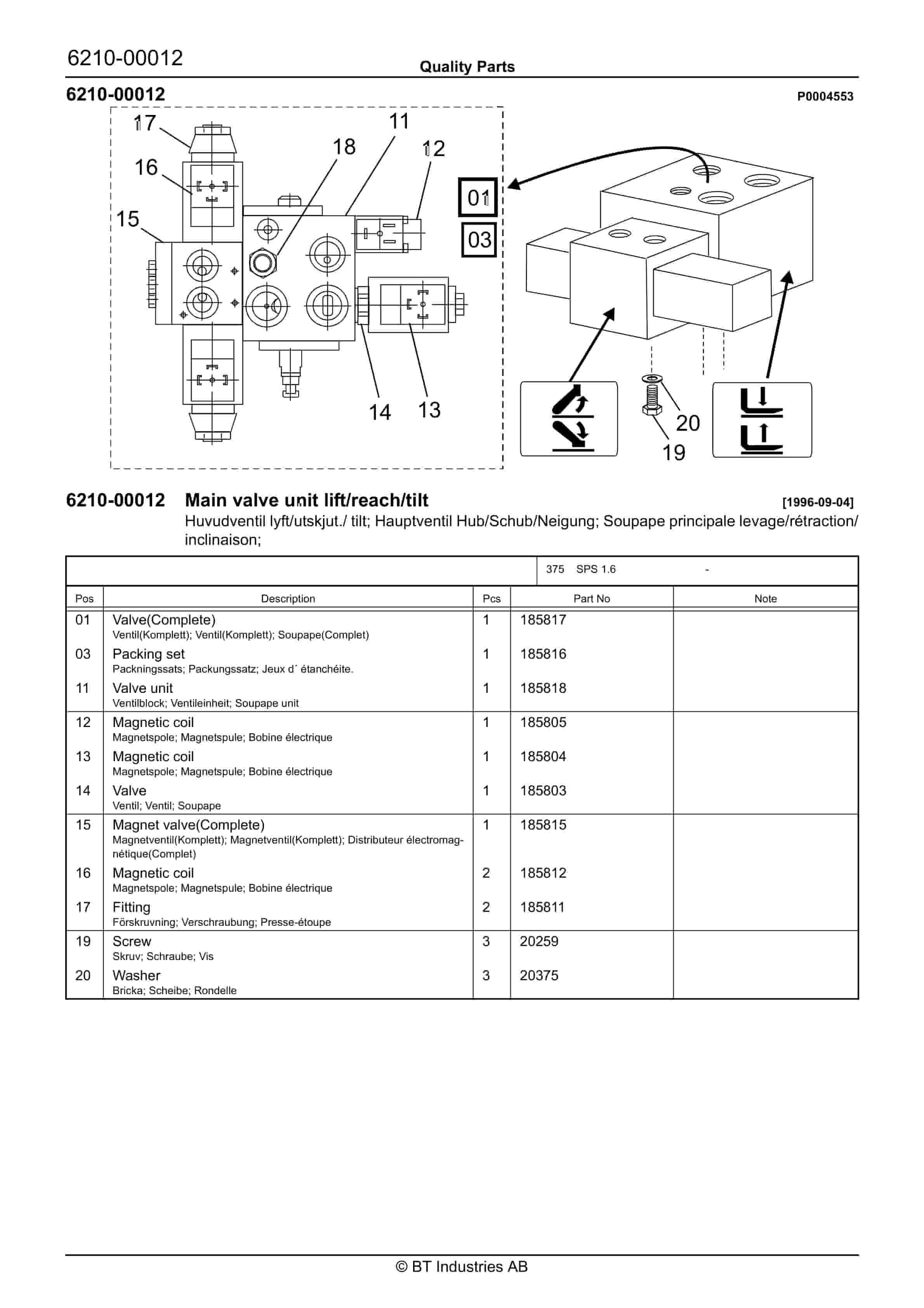 - 117. Main valve unit lift/reach/tilt 1996-09-04