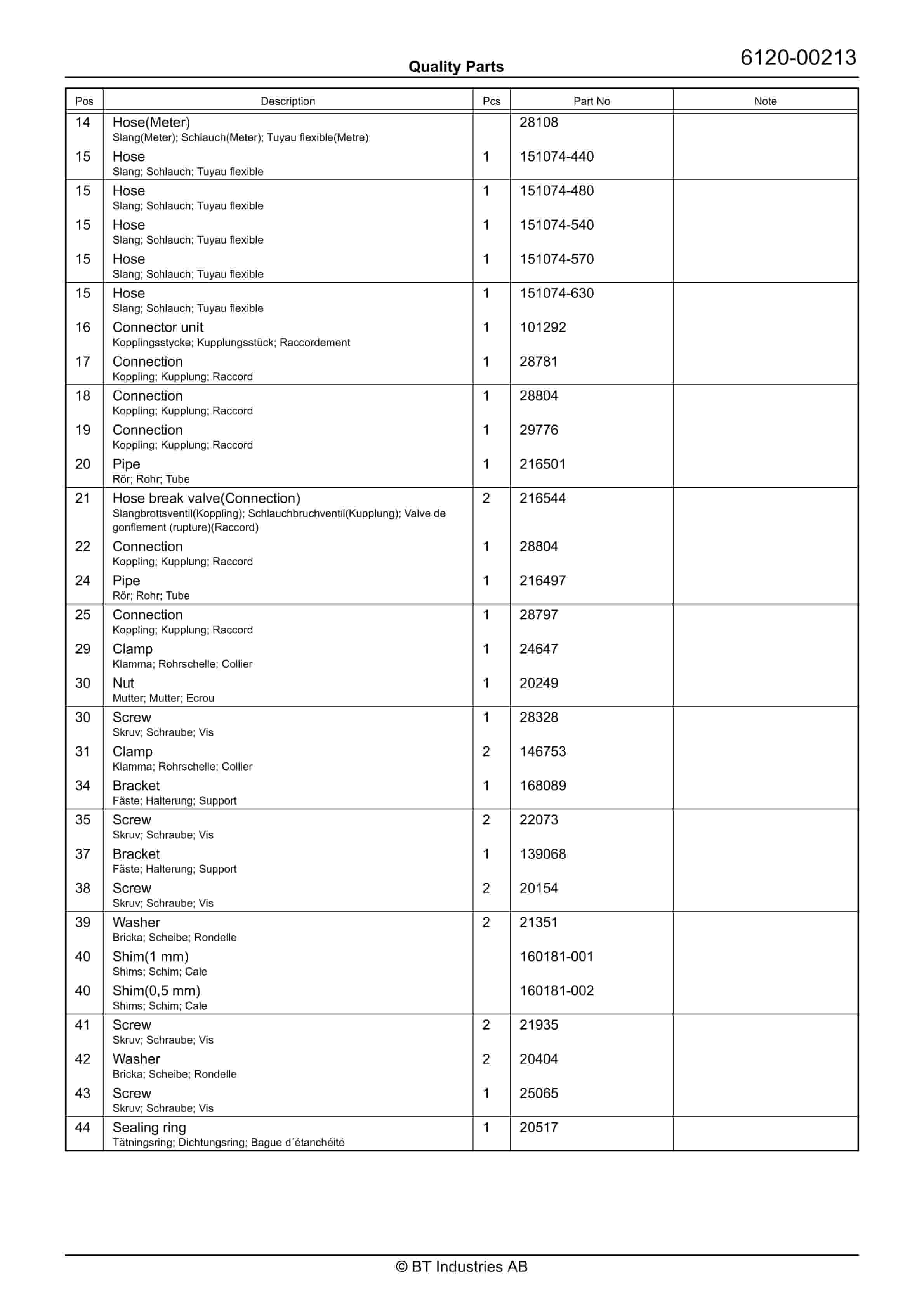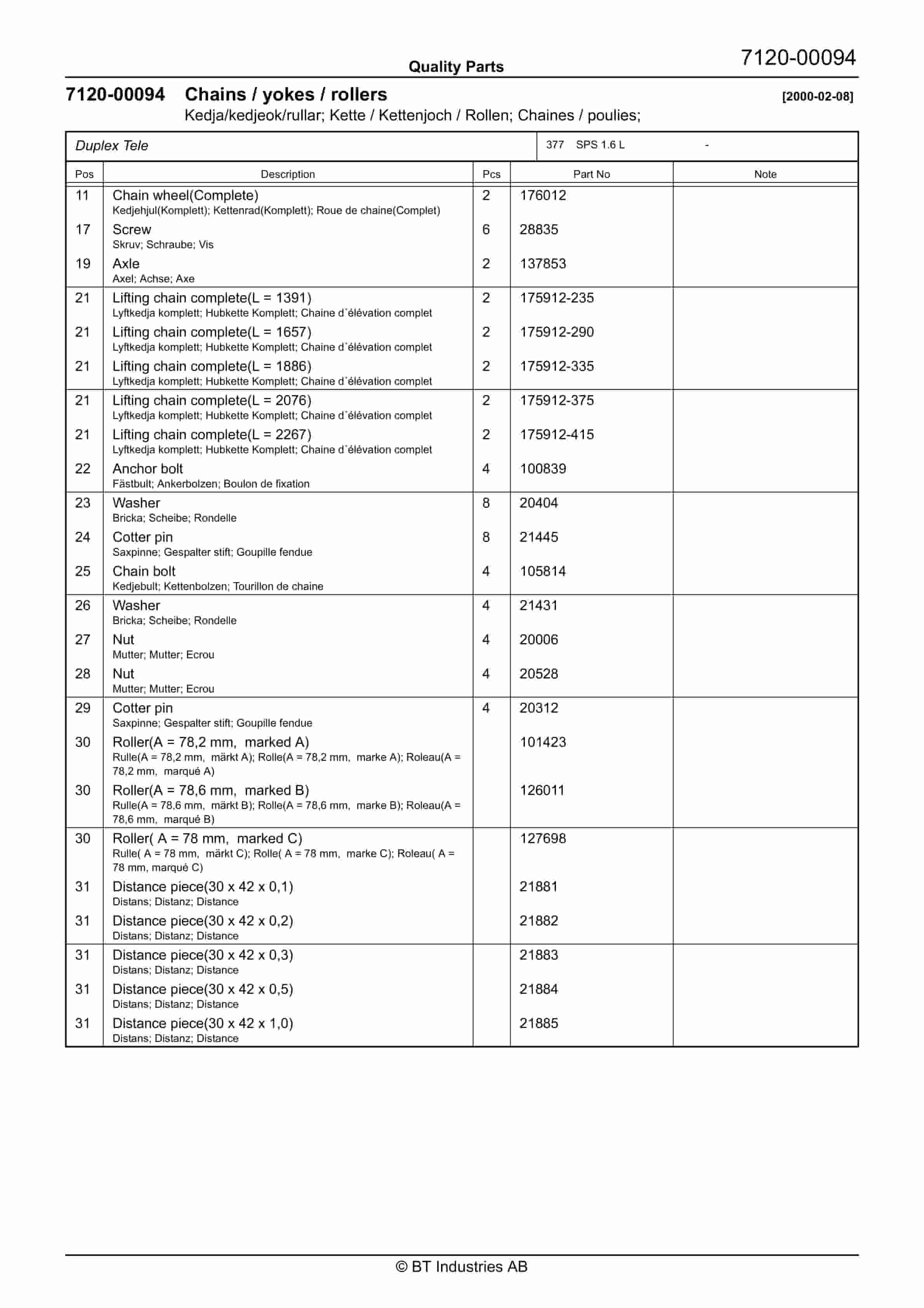 BT BTL2000, BTL2000I, BTL2000K, BTL2000O, BTL2000Q, BTL2000X, BTL2000U, BTL2000QX, Serial 11 Quality Parts 170417
