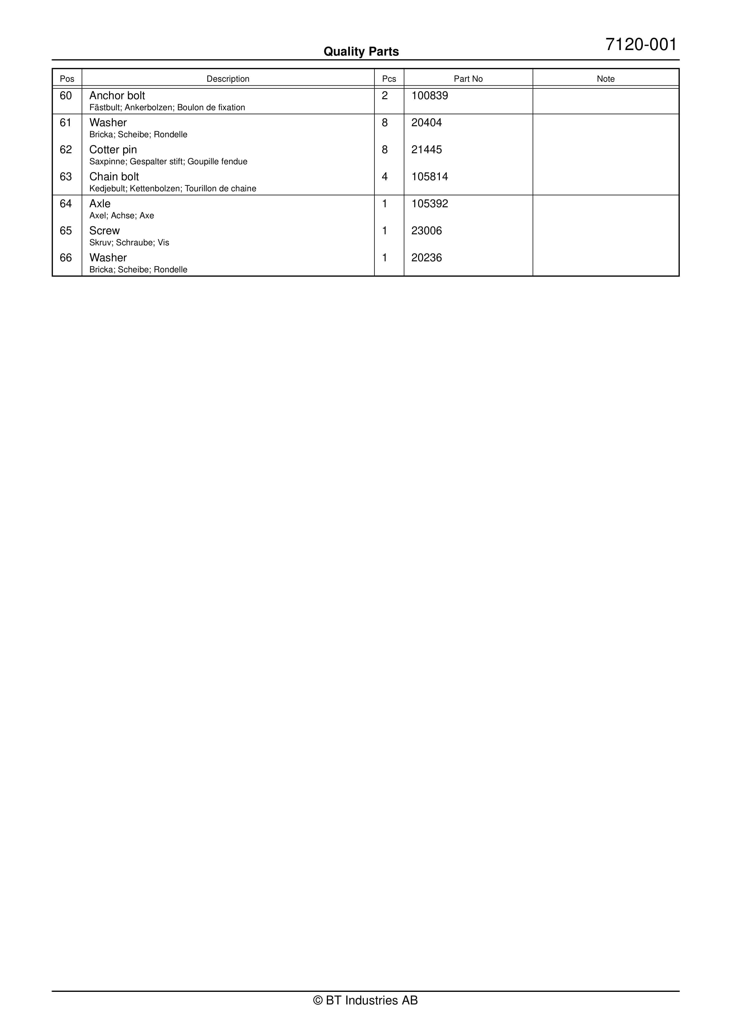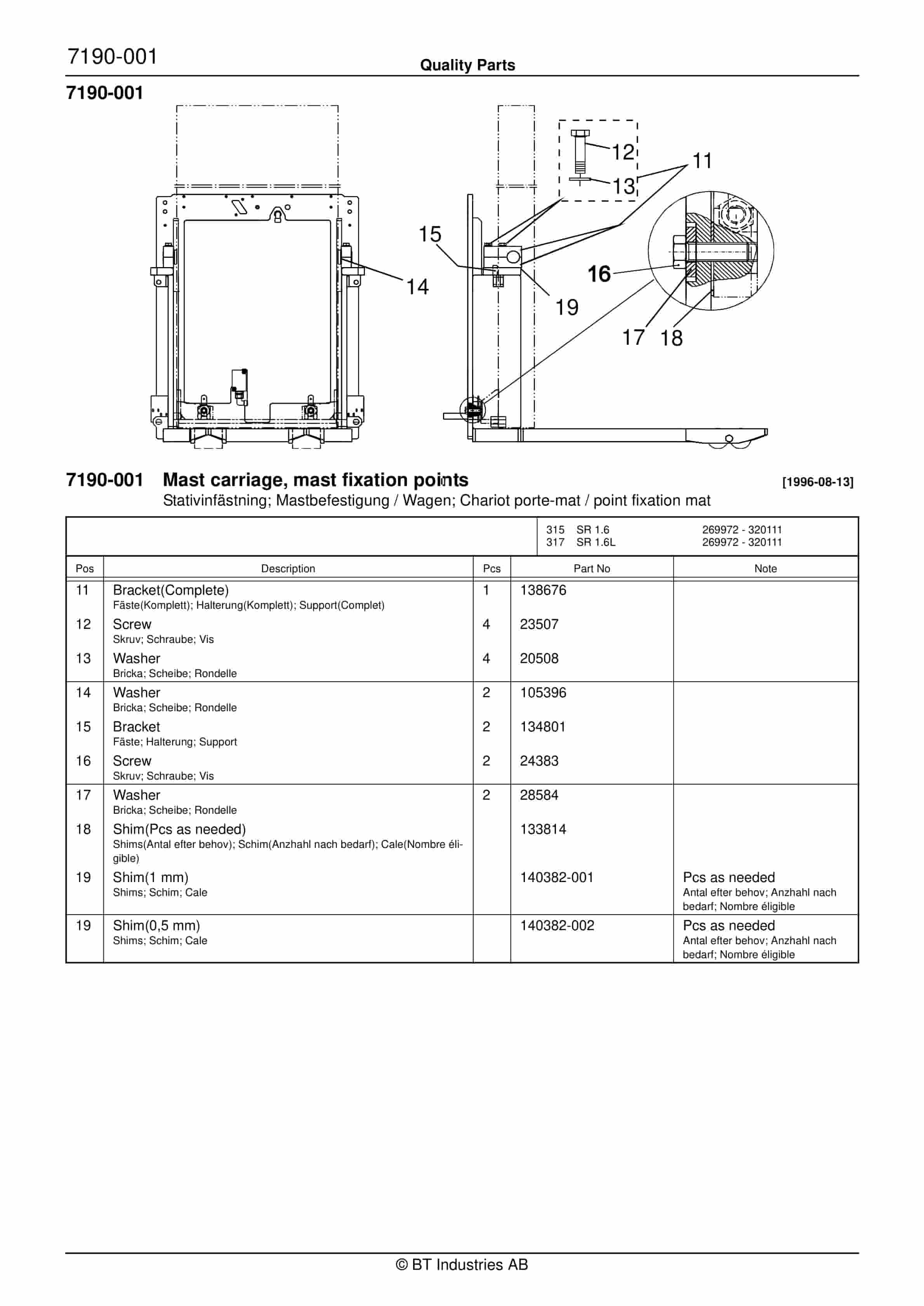 BT SR 1.35, SR 1.35L, SR 1.6, SR 1.6L Quality Parts 157306