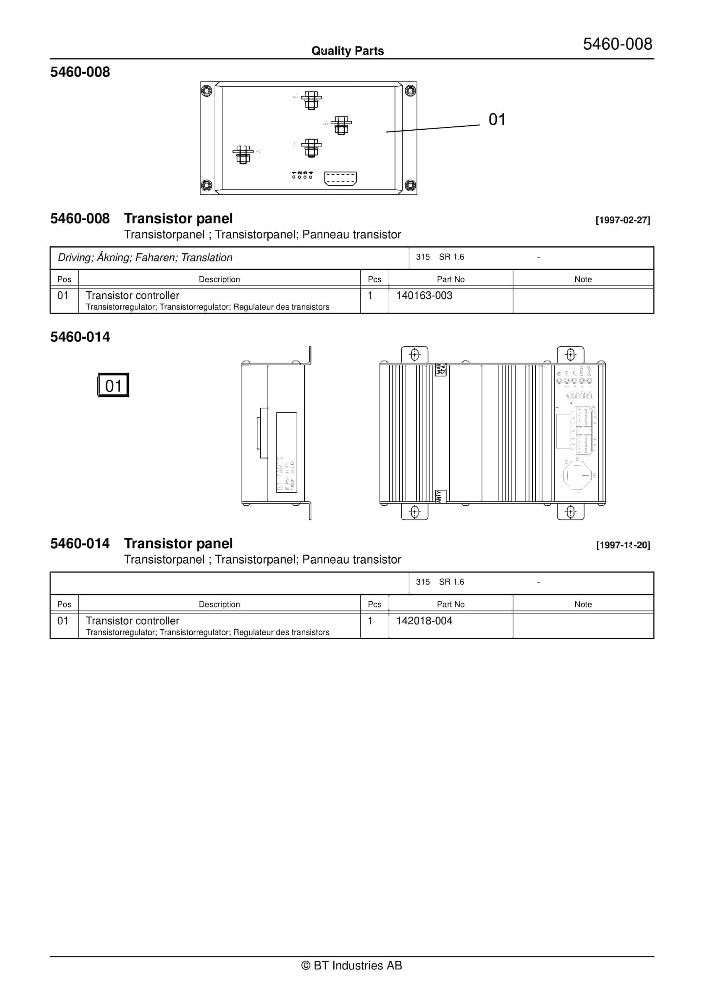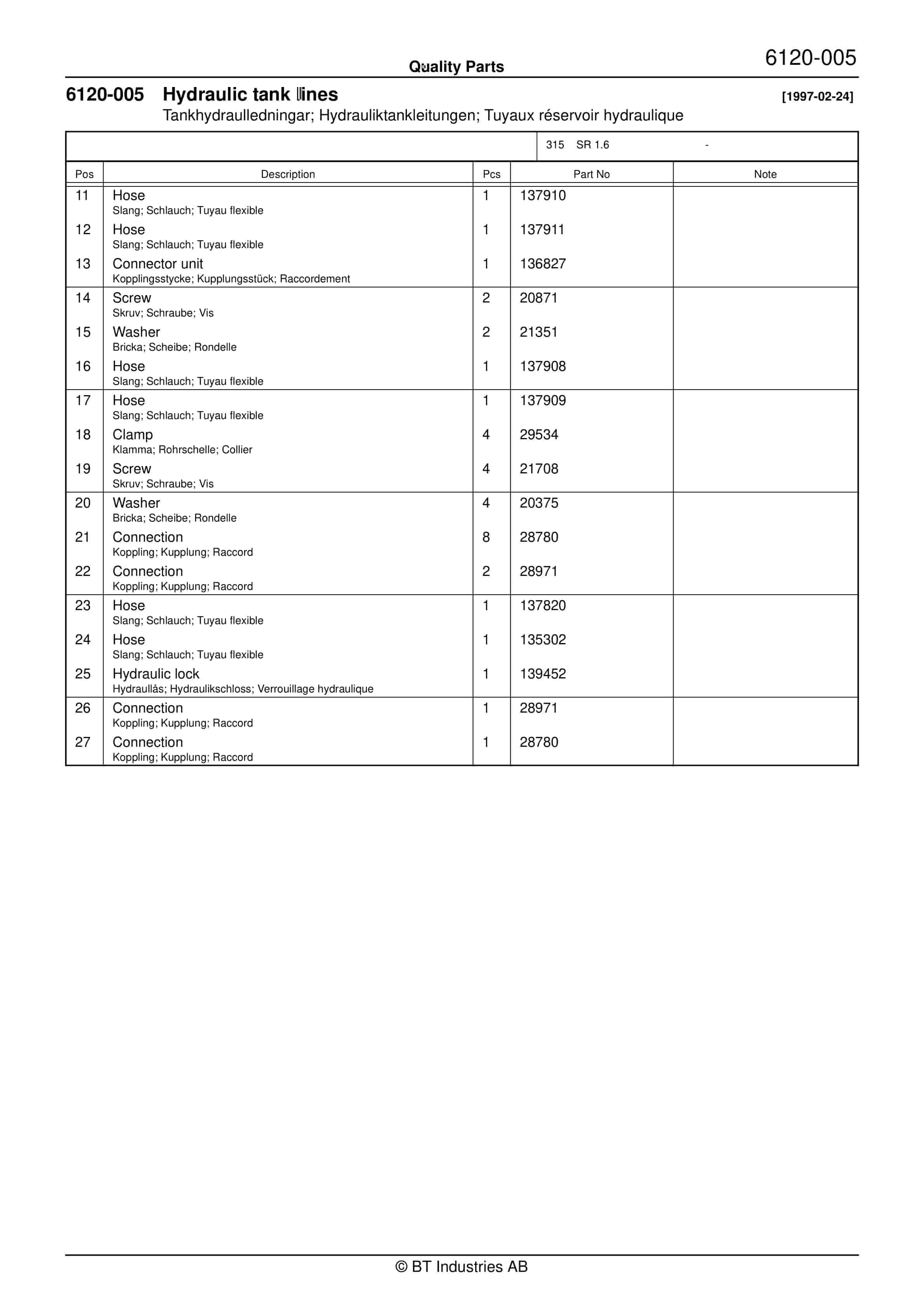 BT 602-TT, 608-TT, 609-TT, 610-TT, 612-TT, 620-TT (AC) Quality Parts 253711