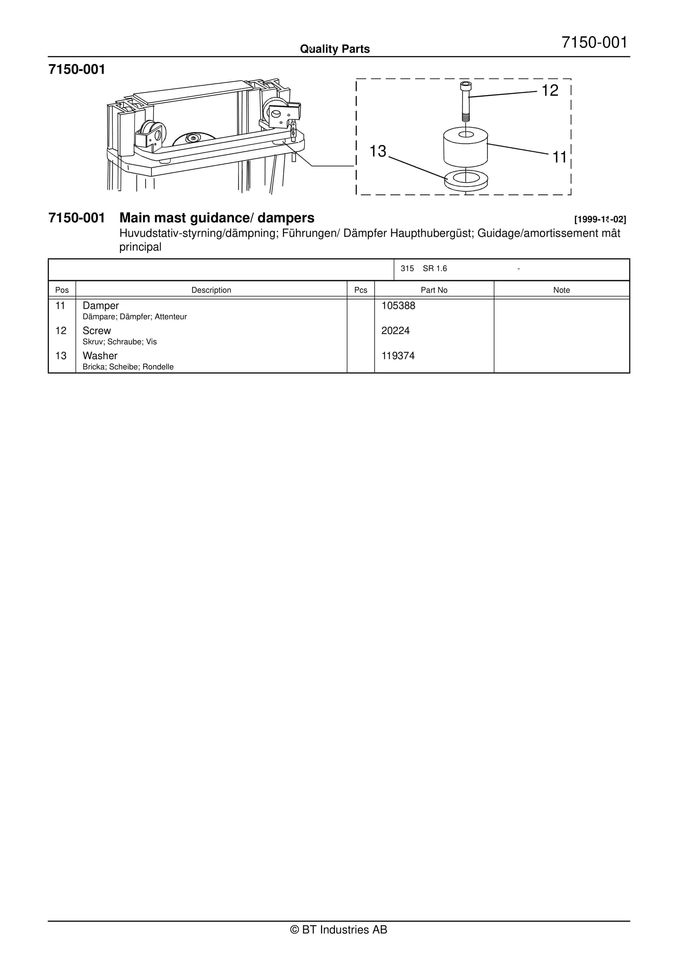 BT SR 1.6 – C000302-5 Quality Parts 846350