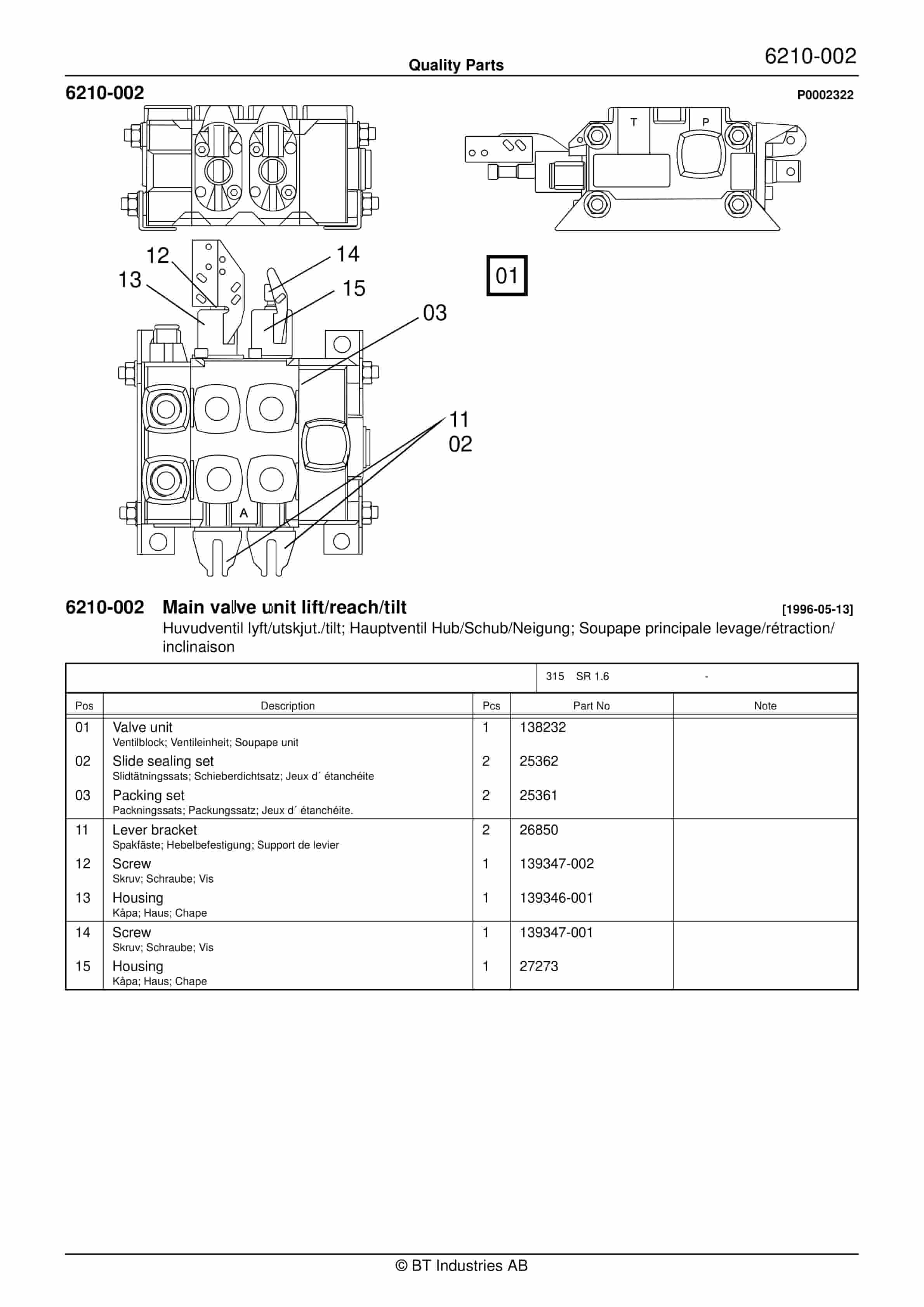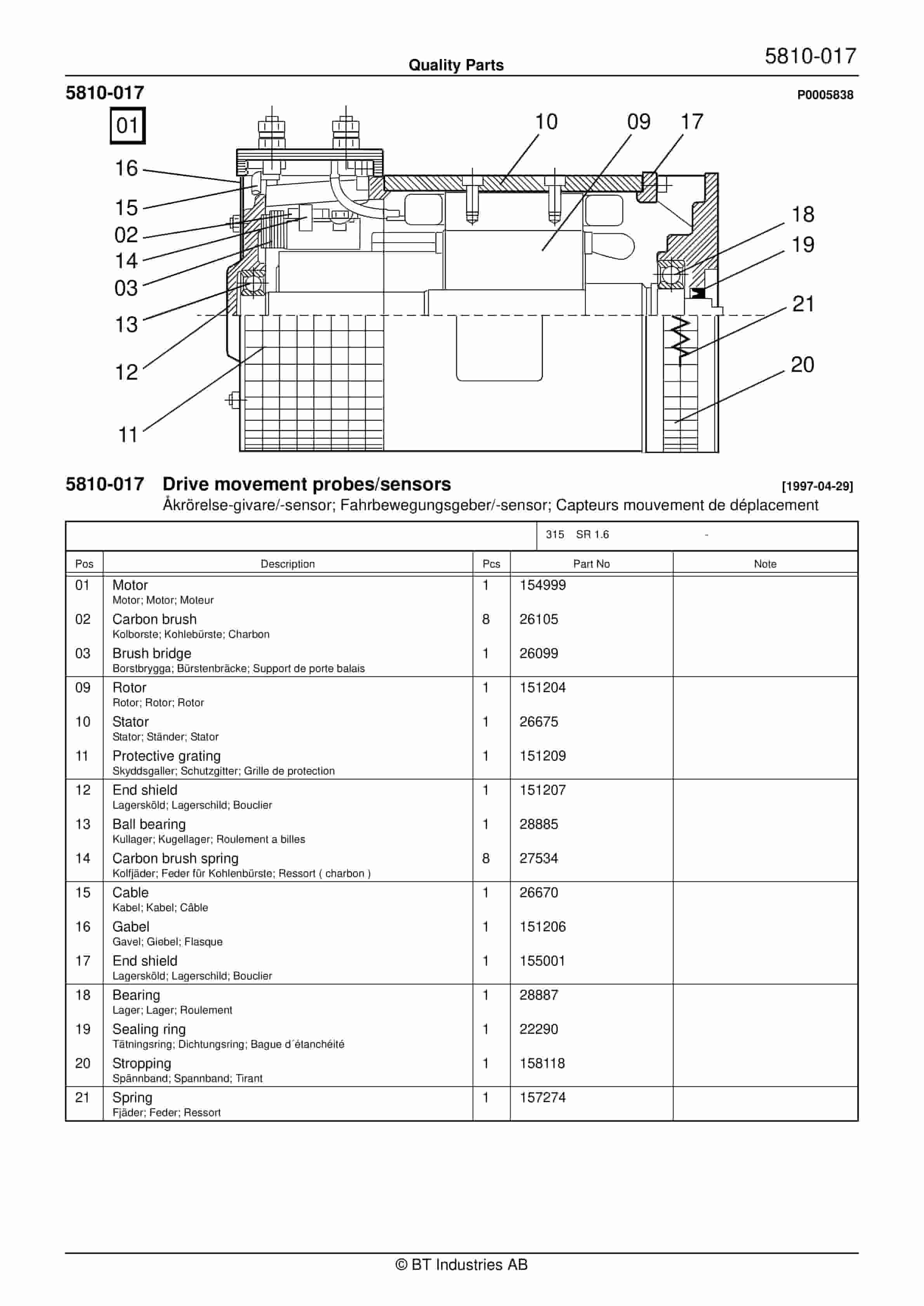 BT SR 1.6 – C010302-5 – C020612-3 – C020612-4 Quality Parts 847209